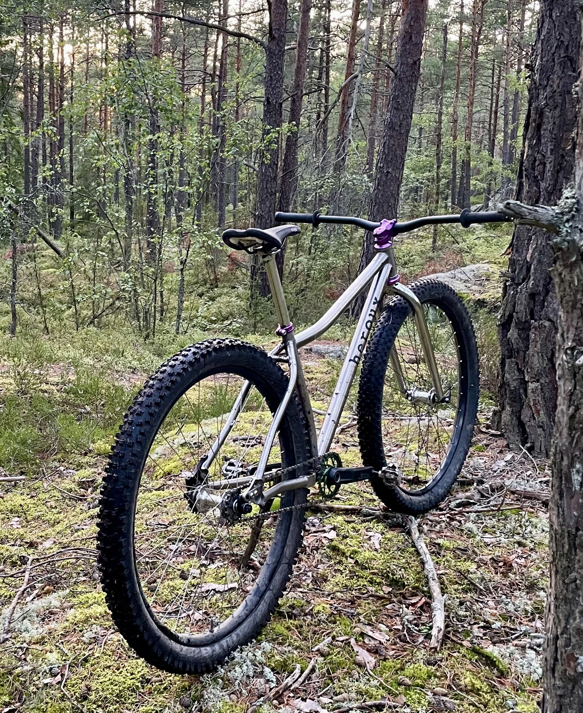 Den sista, dekalstrippade Triton, var ju den första i den nya riktningen. Nästan rätt redan 2010-11, kanske aningen låg fram även för mig men på sin tid något helt nytt. Triton var tyvärr inget företag det var kul att vara kund till, ur det föddes väl lite grann Heroux Cycles istället. Många fina år i skogen hade jag på den dock.