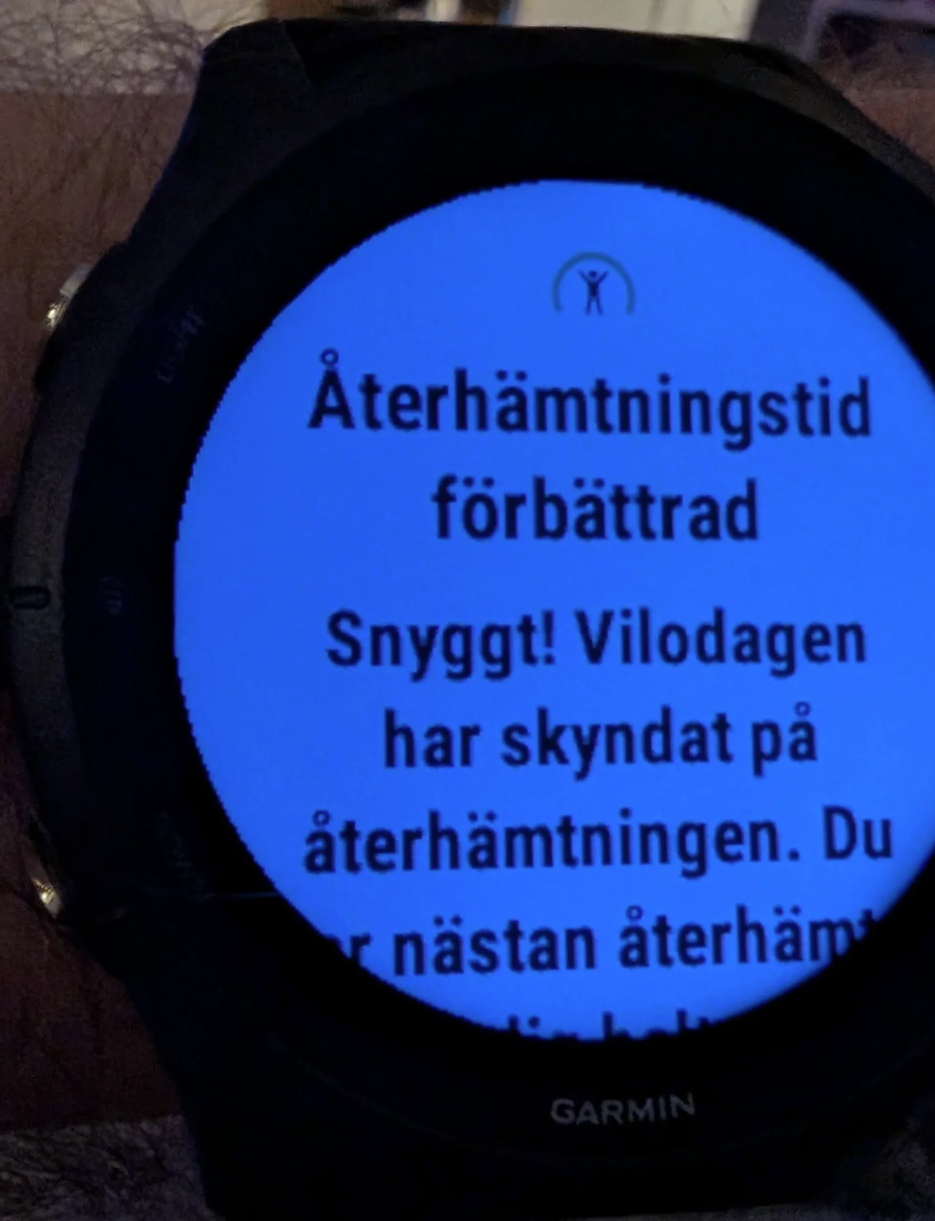 Ja, det blir rätt skumt (åtminstone på svenska), man har tränat vad man tyckte ett bra pass bara för att några timmar senare samma dag få en glad pop-up notis om att vilodagen skyndat på återhämtningen. 🥲