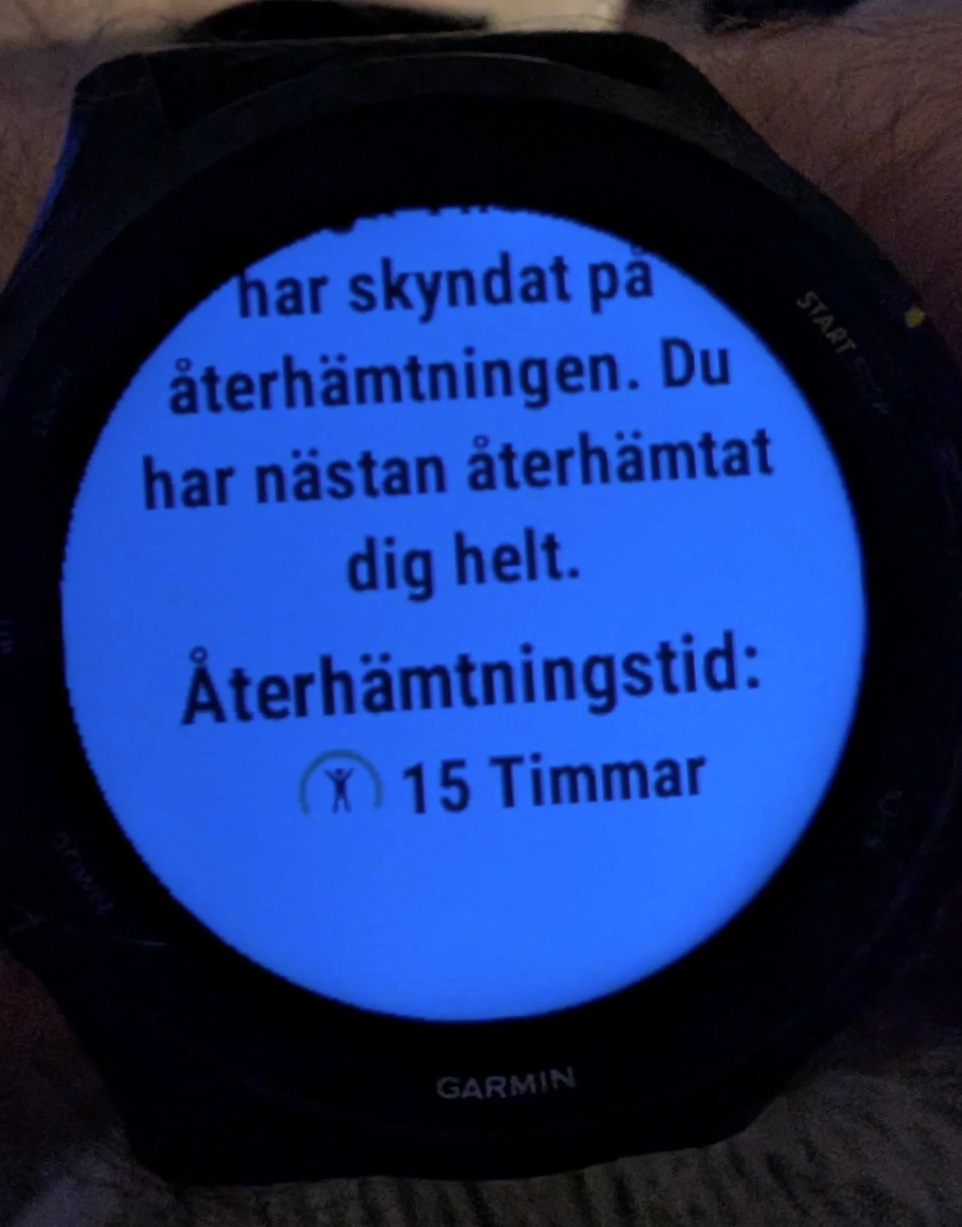 Jag tycker också Garmins meddelanden om återhämtning är märkliga. Jag får en notifiering runt kl 15 varje dag, tränar vid lunch några dagar i veckan och det verkar som att det passet inte tas med i beräkningen av eftermiddagens notis utan den baseras på föregående dags pass.