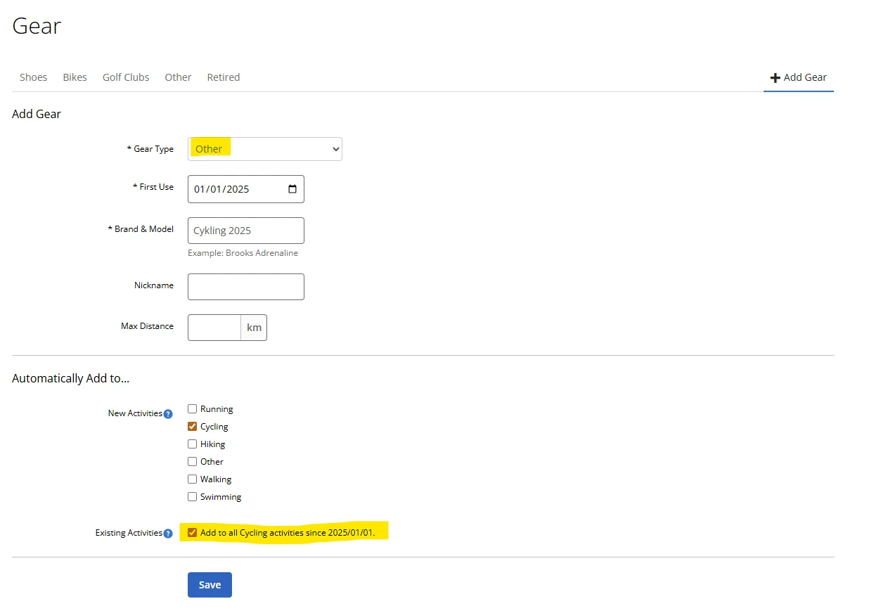 Jag tycker det enklaste sättet att hålla kolla på årets distans är att använda sig av utrustning. Döp ett par skor till Löpning 2025, första användning 2025-01-01, lägg till automatiskt vid löpning. Då borde du få statistik på årets löpning på det paret skor. Om inte annat gör det vid nyår 2026 så blir det rätt nästa år…