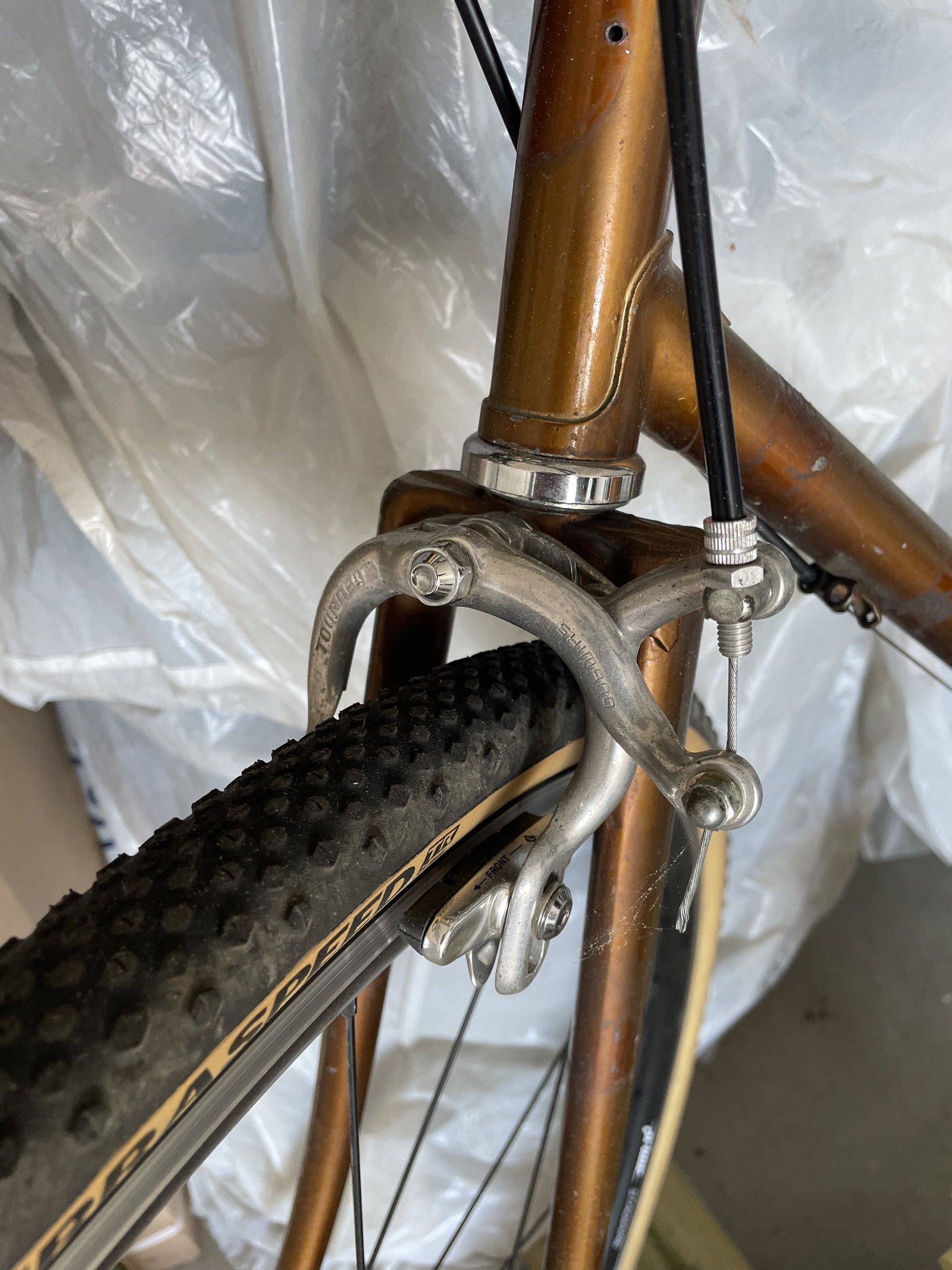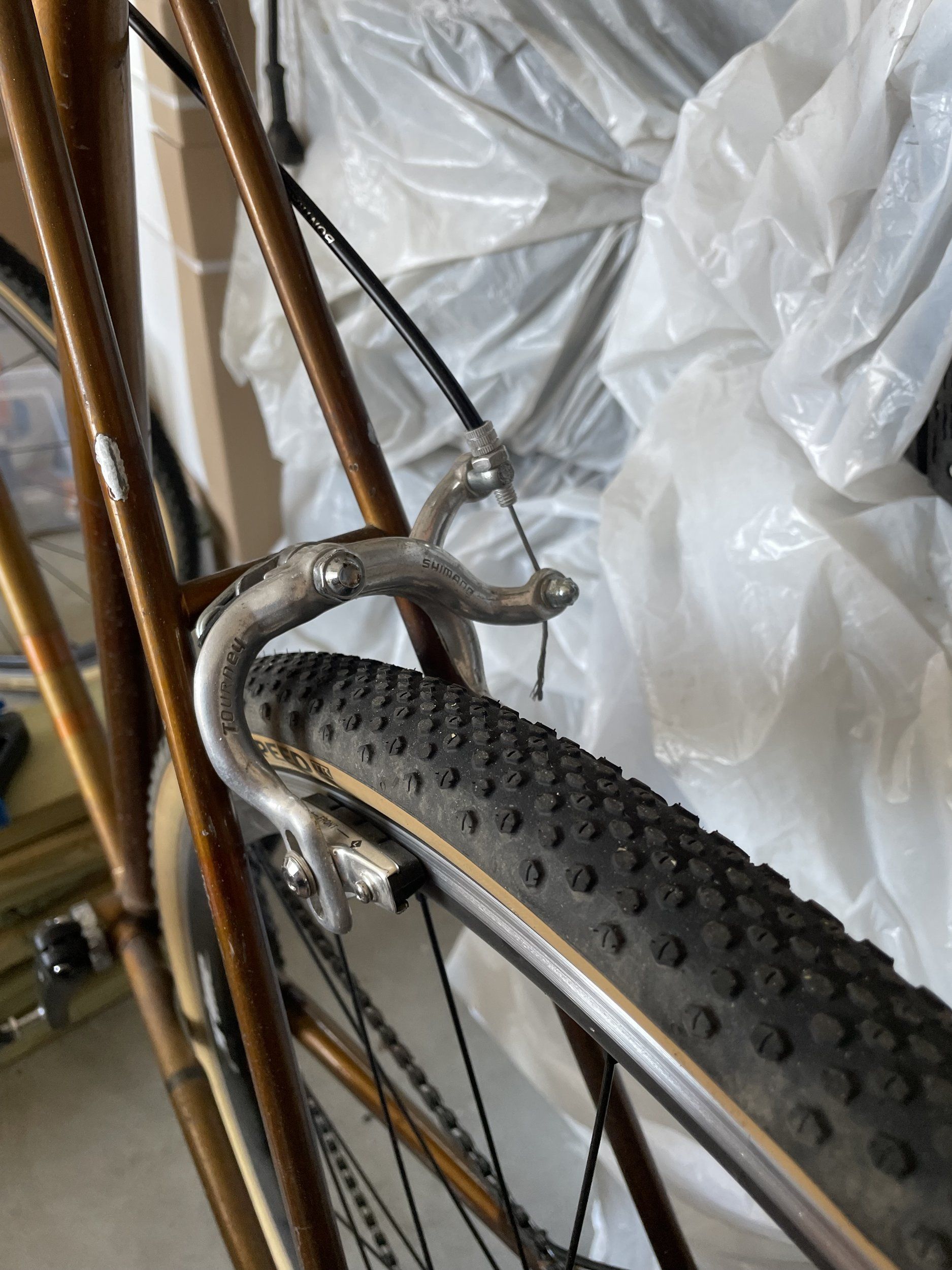 Jag färdigställde för ett par veckor sedan mitt lilla grusprojekt. Nu har den rullat några vändor, och jag har insett svagheten med cykeln. Bromsarna. Därför är jag på jakt efter ett par bromsar som tar bättre och jämnare, och dessutom passar såklart.