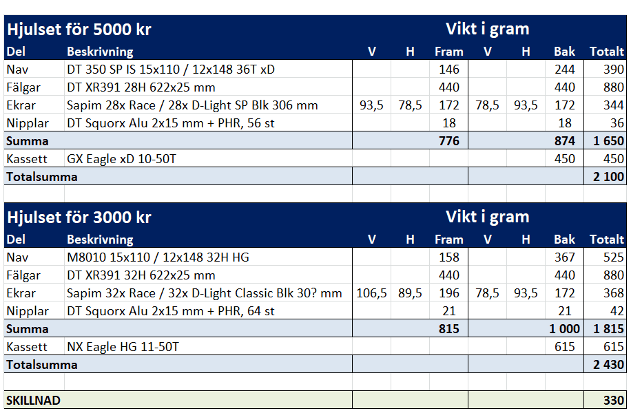 För VR och i de hastigheter som hjulen skall användas är ju inte 100-200g i navvikt på ngt som helst sätt avgörande.