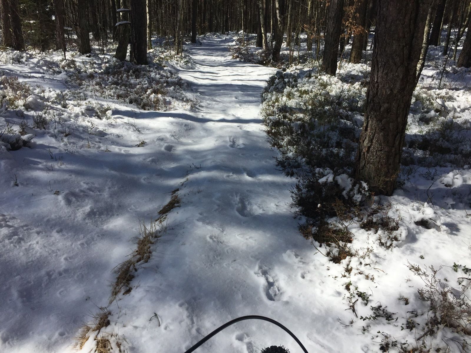Var helt ok fäste idag på stans väg, vildmarksleden, grön/vit, kåsjörundan. Nysnön har gjort att isbanorna under inte känns av (inte där jag var) och jag kör odubbat. Det enda var att snön på vissa partier var lite tjockare så framhjulet ville gärna glida iväg i den mjöliga konsistensen. Lyckades ramla tre gånger iaf, en OTB som jag lyckades avstyra genom att kliva av innan och låta cykeln volta :)