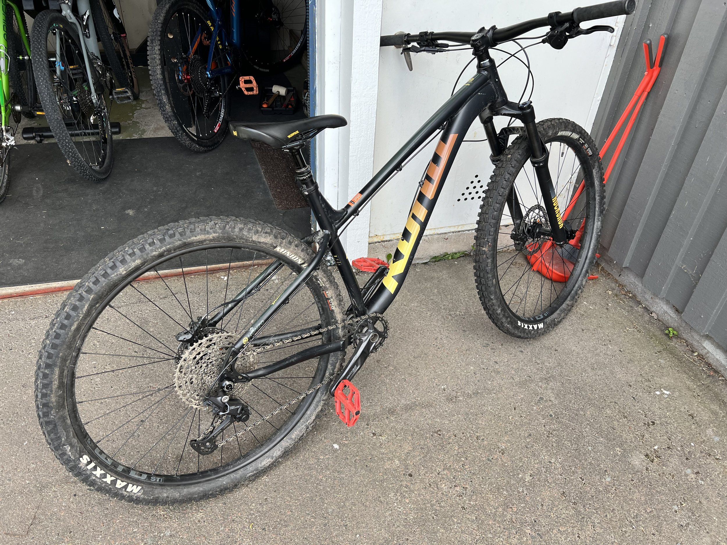 Jag skulle behöva lite hjälp. Efter en tur märkte jag att bakaxeln på frugans Kona Honzo (-19) satt löst. Muttern/delen som man gängar i axeln har ramlat av.