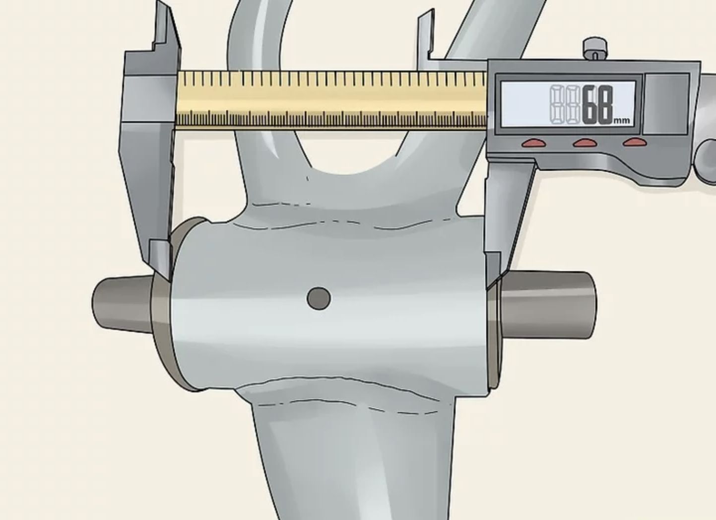 Du mäter bredden på vevlagerhuset. Den delen av ramen som lagret är inskruvat i.