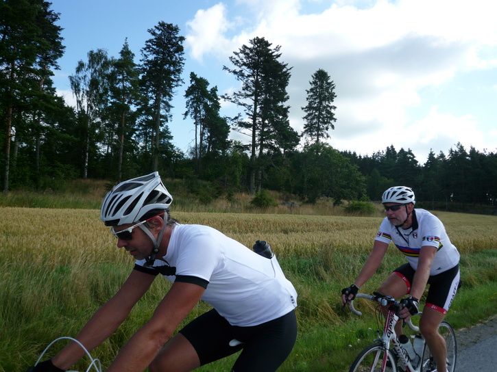 Dagens skratt bjöd Rippa på. På vägen ut så stannade vi till i Bålsta jag bad gruppen sänka farten lite då vi hade ganska långt att cykla idag, närmare bestämt 35mil, minen på Rippa var obetalbar, han trodde att det var något med 20, han insåg att det skulle lidas idag!