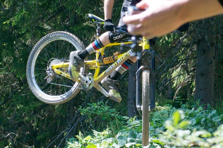 > nytt på en sponsrad åkares cykel mitt i Whistler