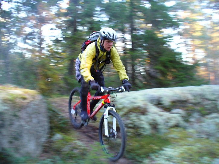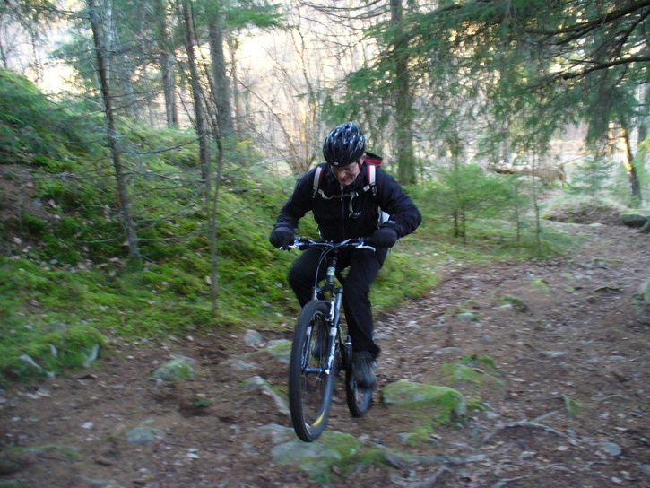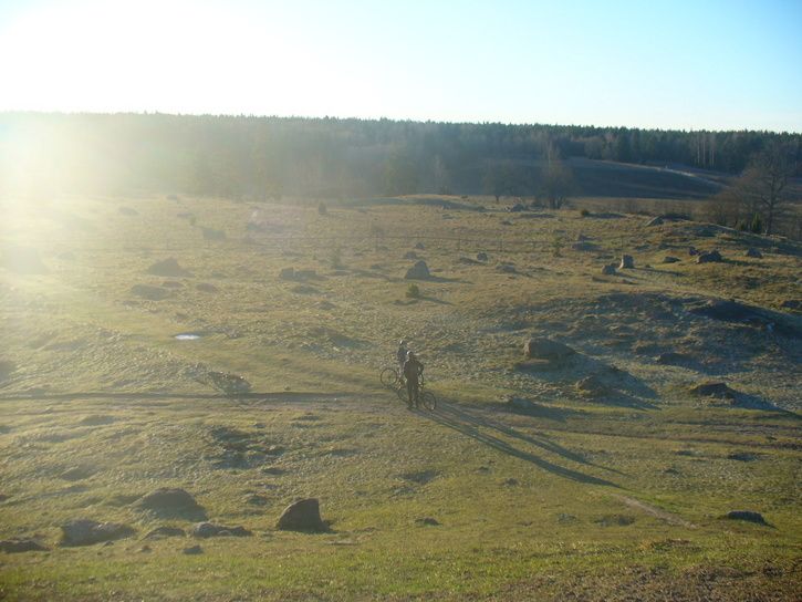 Raffe och jag körde också en sväng i Nåsten. Det blev den klassiska Hundslädevändan med Lasses. Vi gjorde även en del nyupptäckter - på en del av Skidspåret mellan grusvägarna i norra Nåsten nära Håga fanns ett strålande vackert parti med fina hällar och roliga steg. Tyvärr tog batteriet slut till kameran just där. Här dock den enda bilden batteriet räckte till.