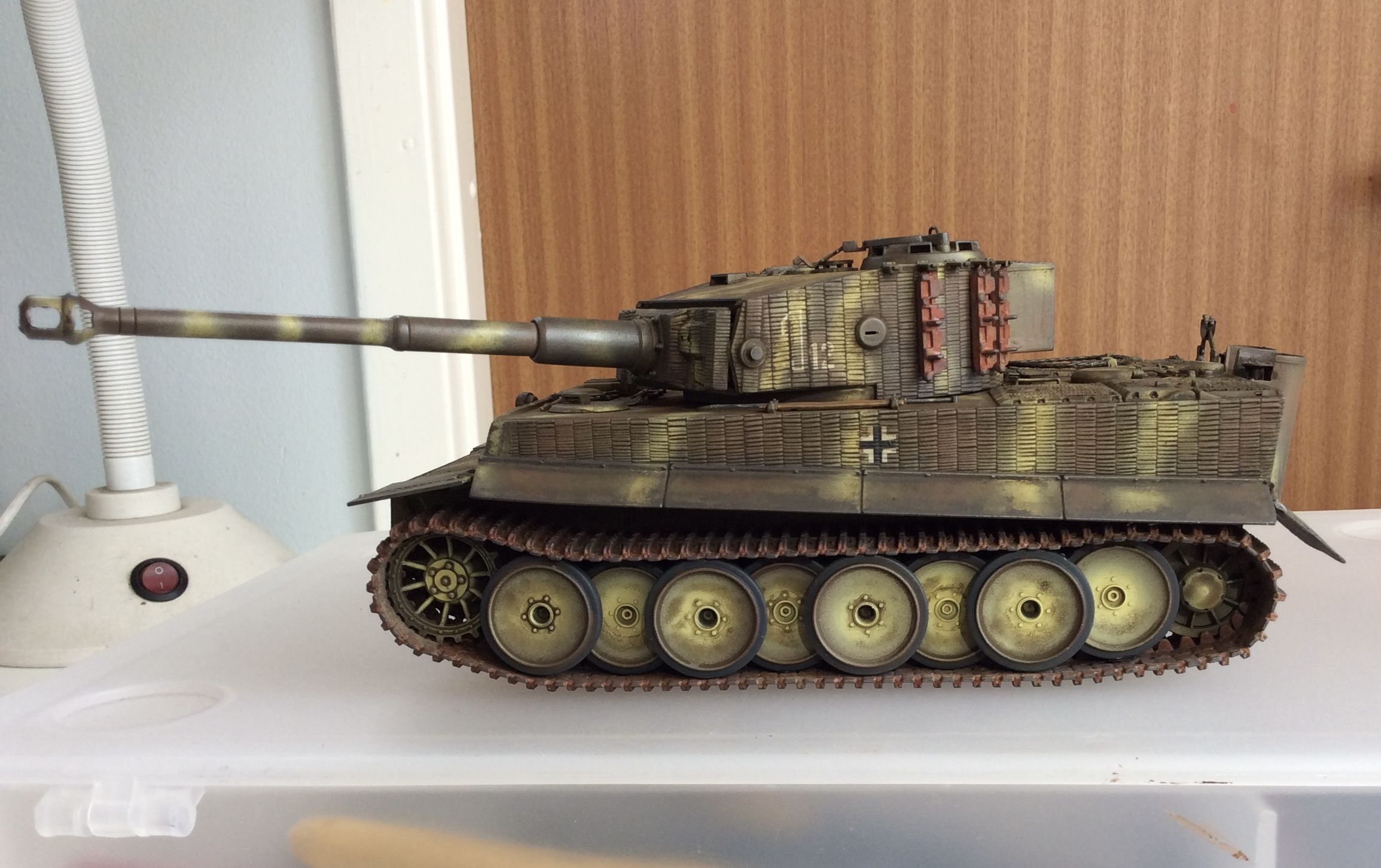Nått måste man ju pilla med när man sitter ensam i en lägenhet. Sagt och gjort, modell, färger, lite penslar och modell införskaffades. Köpte ett litet "bakbord" som snabbt limmades och sattes ihop. Lite litet, men det funkar, lätt att städa undan om så behövs. Inte så många bitar, men...