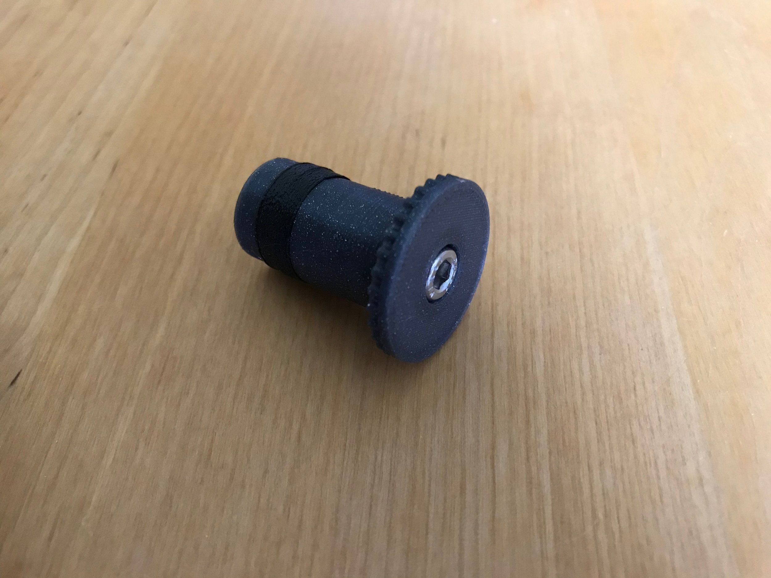 Printad i PLA respektive TPU för delen som expanderar när man skruvar ihop pluppen.