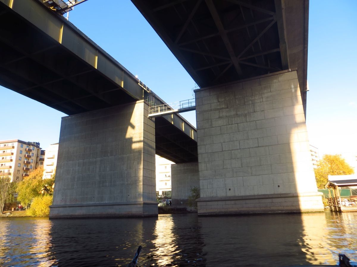 När jag åkte över en bro så såg jag en gammal stenvalvsbro som löpte parallellt.