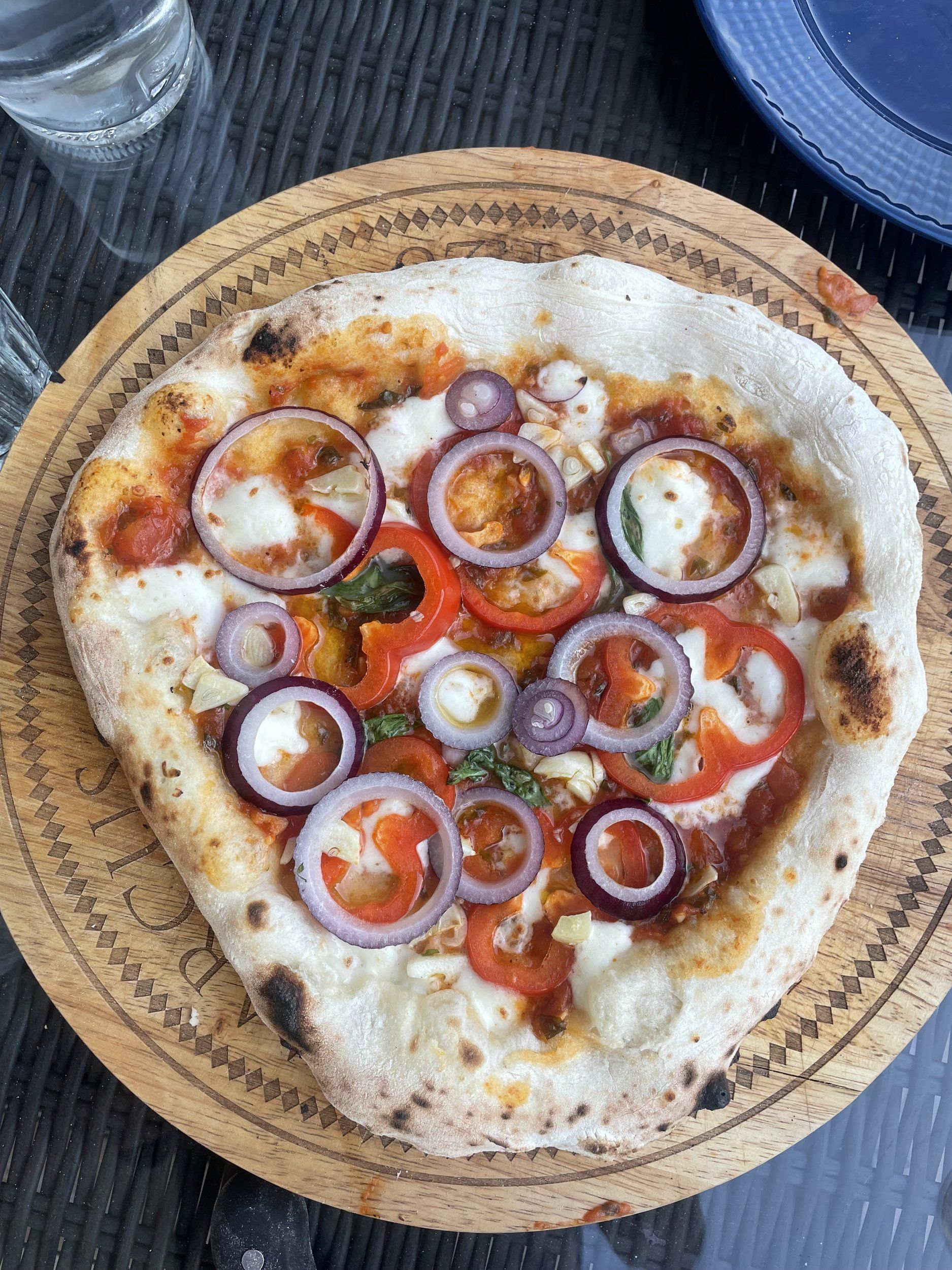 Pizzorna ville inte jäsa upp som de brukar. Kärnan i kanterna blev lite degiga trots bra flås i pizzaugnen.