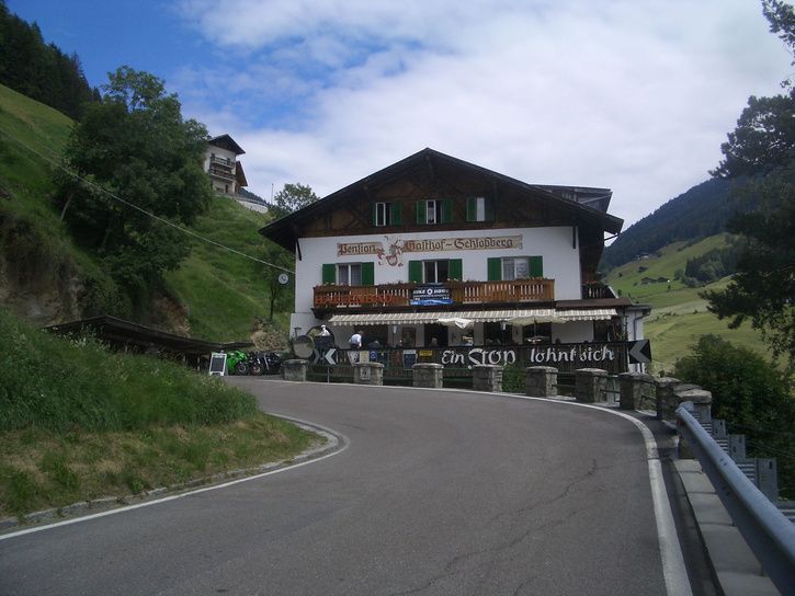 Efter ankomst till San Leonardo och fixande av boende, så monterades cykeln ihop och sedan en snabb pasta vesuvio innan avfärd mot Jaufenpass. Ca 27 grader i byn, men det såg ut att dra ihop med moln över Jaufenpass - vad gör jag då? jo, lämnar vindjackan hemma:(