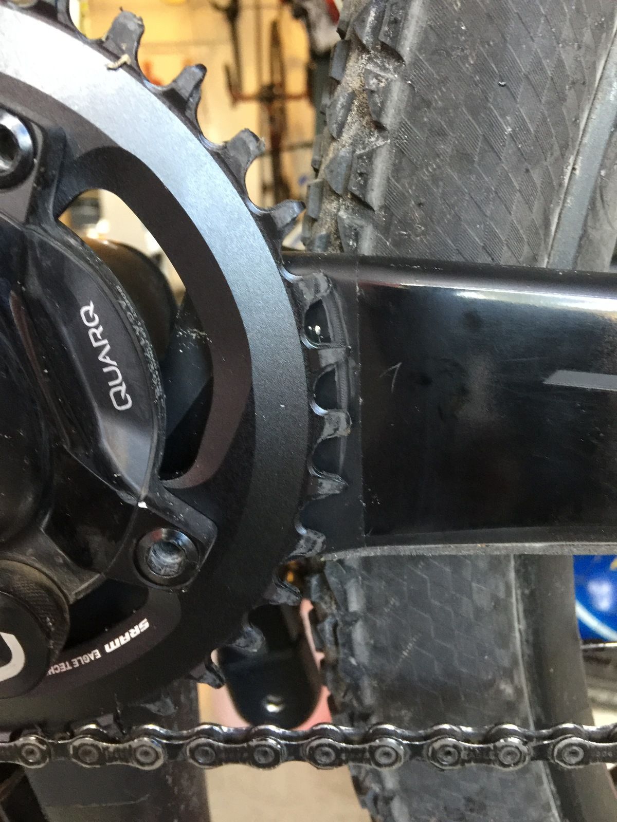 En fuling man skulle kunna göra, men som ändå borde funka hyfsat då många sram-sponsrade åkare gör det, är att köpa ett x-sync 1-drev för BB30 med 0mm offset i 38t utförande. Då slipper du oroa dig för de små marginalerna. Å andra sidan löser det inget för dig med din Quarq...Dr_Rydell sa:Angående 38 klinga på årets Spark som diskuterats tidigare i tråden. https://www.pinkbike.com/photo/14740159/ kika på bilden. Ser ut att ramen fått sig en repa. Specialgjorda fästen för kedjefångaren (original går upp till 36). Någon som har en aning om vad man ska leta efter ett sådant?