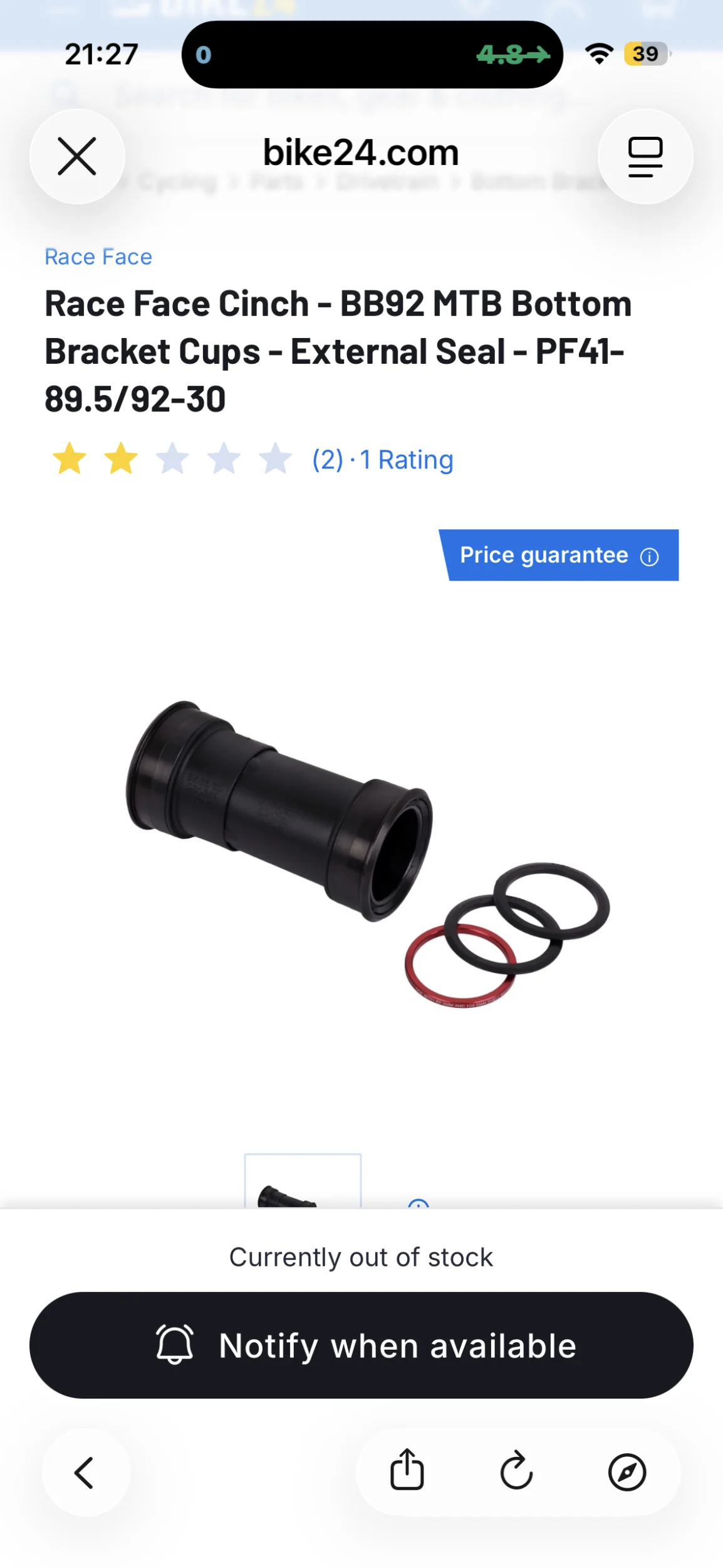 Det tror jag är original (om det är 30mm axel), men Raceface har rätt dålig kvalitet på sina lager så det kan vara värt att testa något annat märke (där lagret har 41mm ytterdiameter och 30mm innerdiameter).