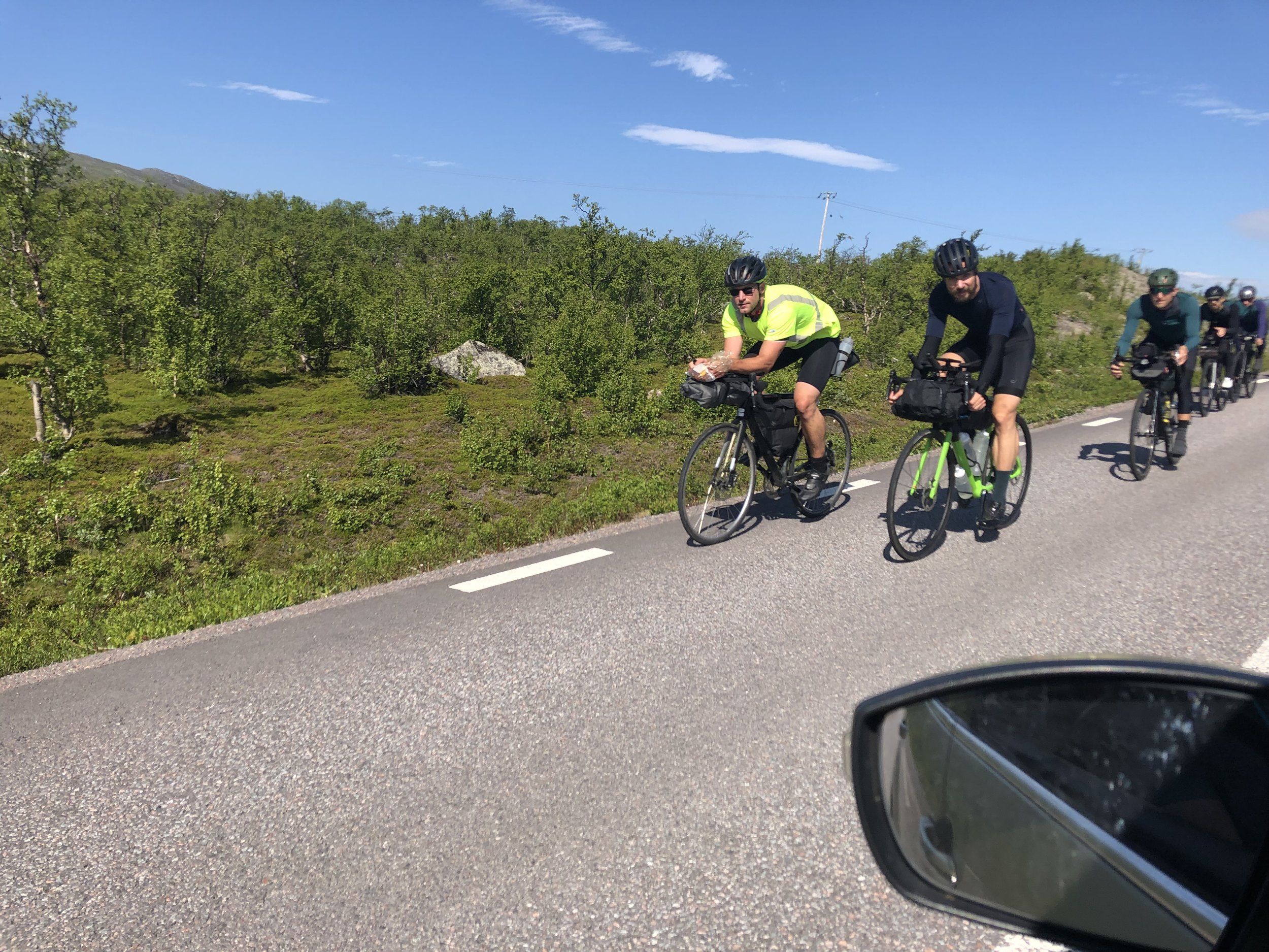 De kom till Jokkmokk 20:12. Jag åt pizza med Wei, Eyvind och några till. De såg helt oberörda ut.Eyvind, Wei, Krabbe och mhenry rapporterats i Jokkmokk runt 344km enligt Strava. Bra rullat!