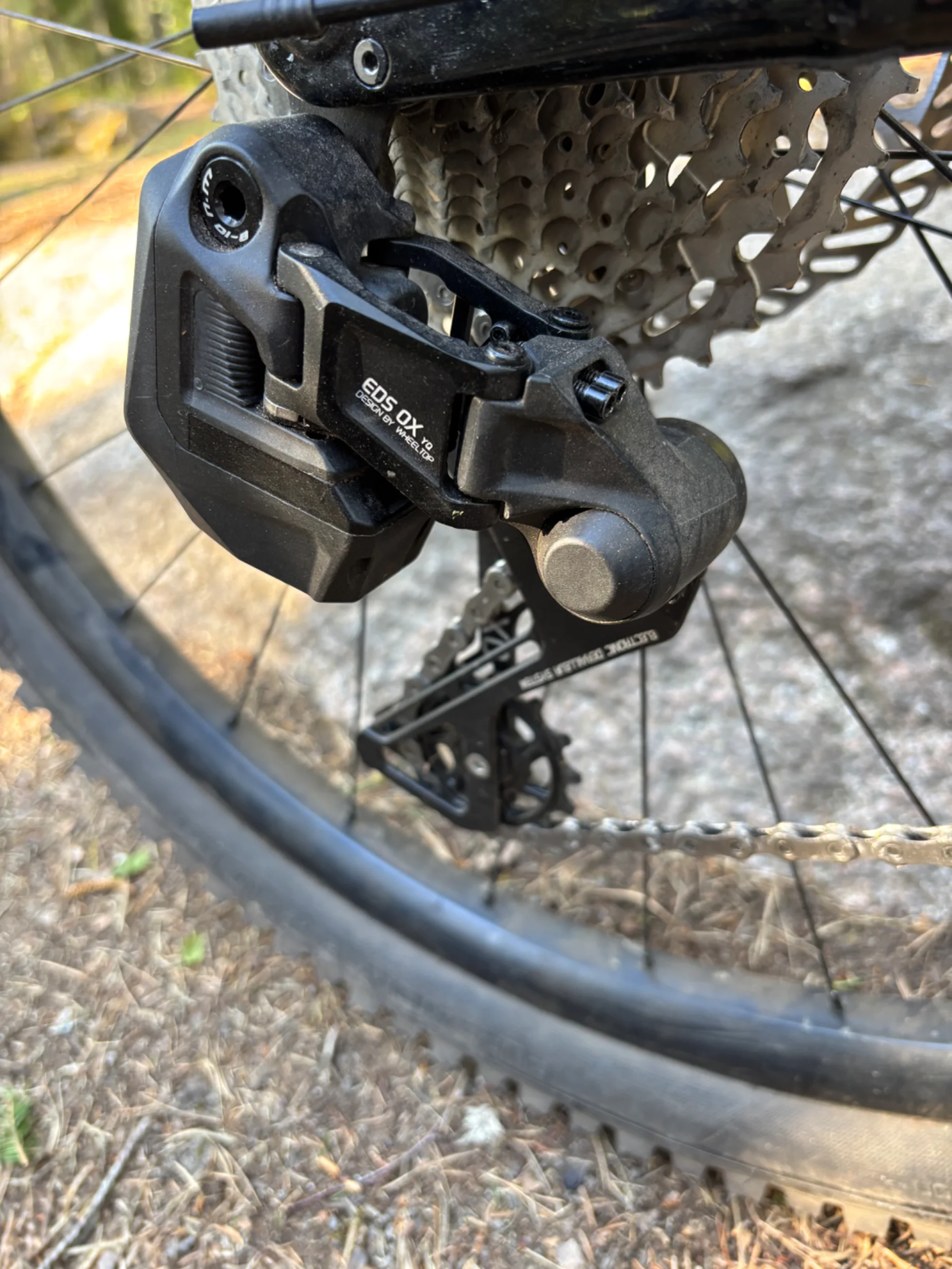 Jag såg en annons på k&s på ett oanvänt Wheeltop bakväxelkit. Vad är det? tänkte jag först men när jag läst lite recensioner så slängde jag mina lättviktiga etiska principer om att försöka undvika diktaturproducerade produkter i soporna och köpte. Mest för att jag i alla år varit konstant missnöjd med SRAM eagle. Jag tycker de är extremt känsliga och växlar aldrig distinkt och tryggt över hela (den alldeles för stora) kassetten. Då kändes trådlöst och valfritt antal drev bättre.