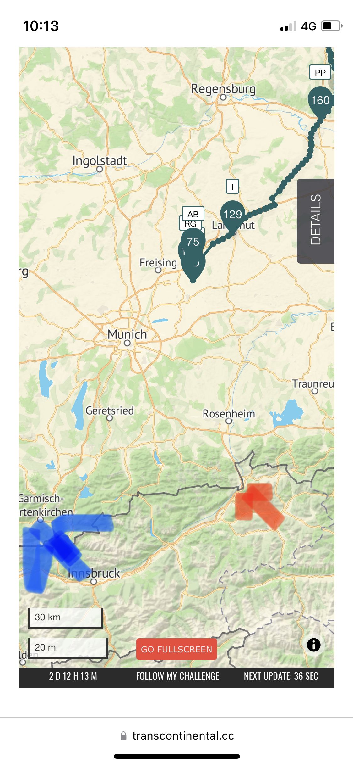 Om man jämför med Kufsteins läge i öst-västlig riktning då var de tidigare klart öster om den orten medan de nu är väster om. Nu har jag inte koll på topografi och vägar men spontant kändes det som att den rutt de nu följer inte skulle vara den raskaste till Kufstein medan den verkar rimlig om de ska mot Garmisch.