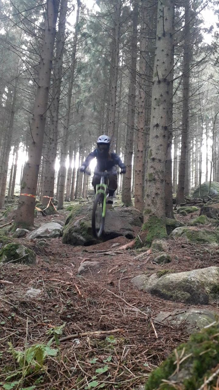Vi har jobbat sen i våras vid lite olika tillfällen med spåren, tidigt i våras gjorde vi i ordning ett av de gamla DH spåren som fick lite ny dragning vi har även gjort ett nytt spår som går till vänster om liften som heter Lobo. Vi körde liften nu den 26 juli efter gjort reklam för detta i olika grupper på Facebook kom det helt otroliga 93 personer vi hade räknat med ca 50.