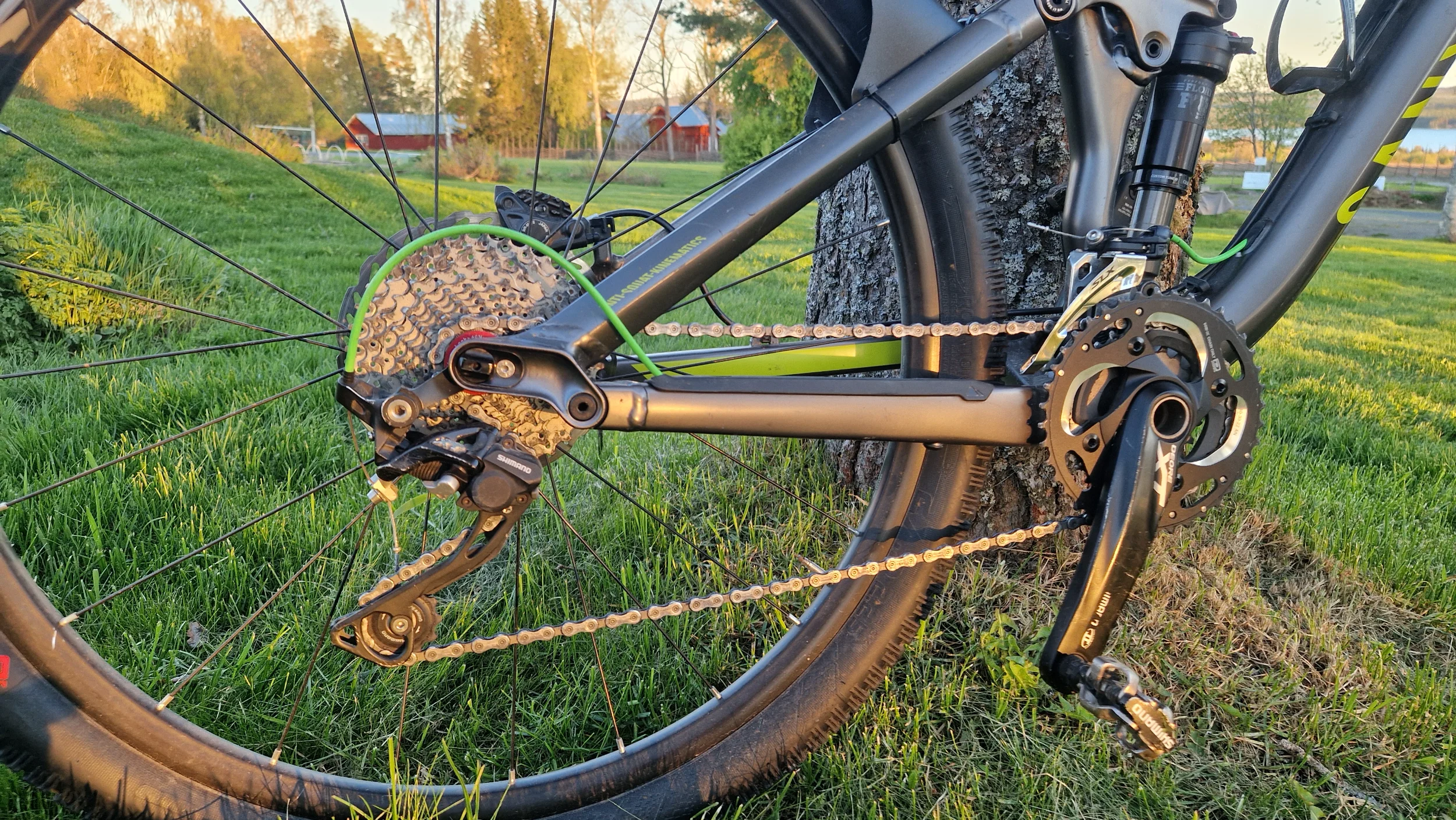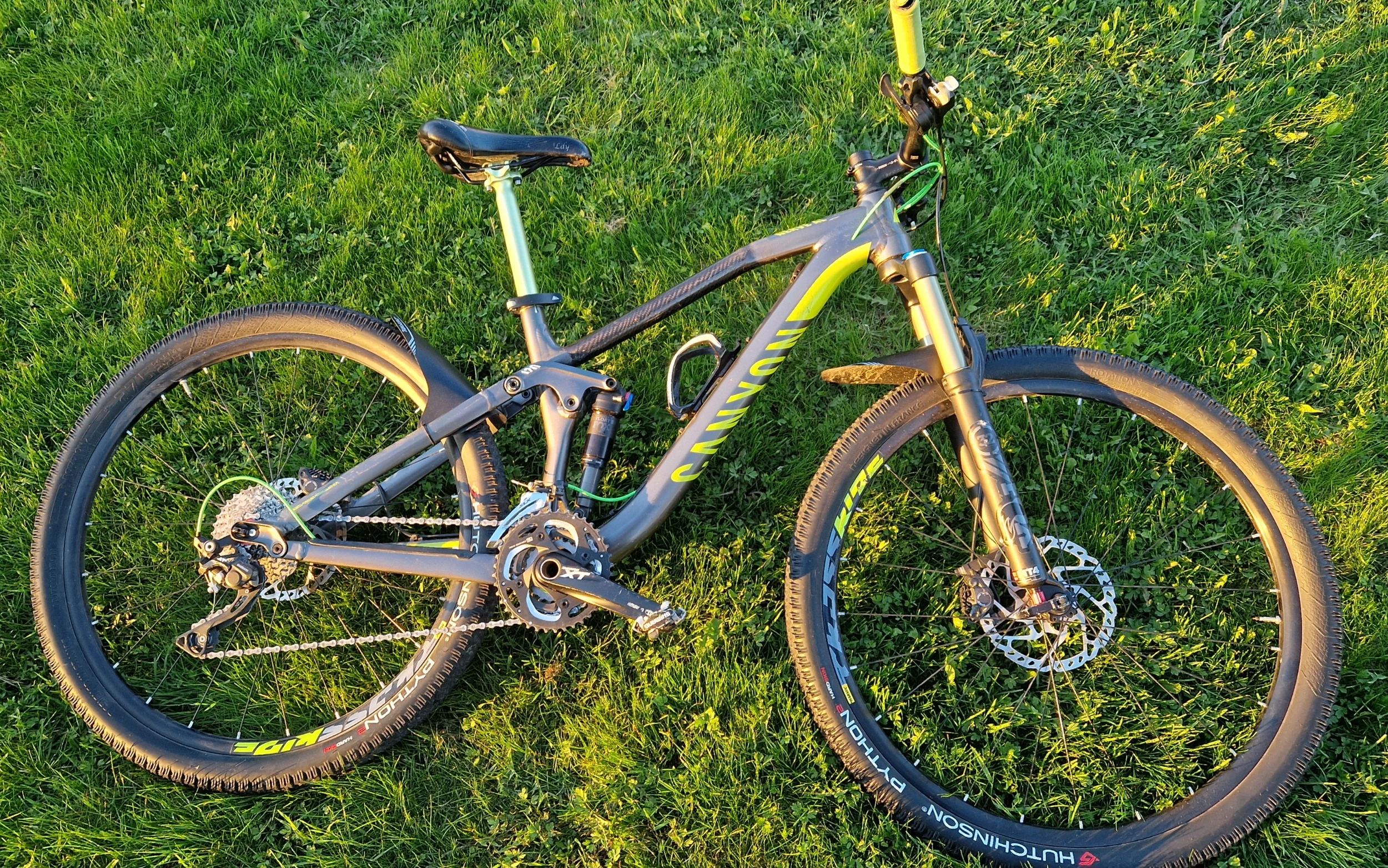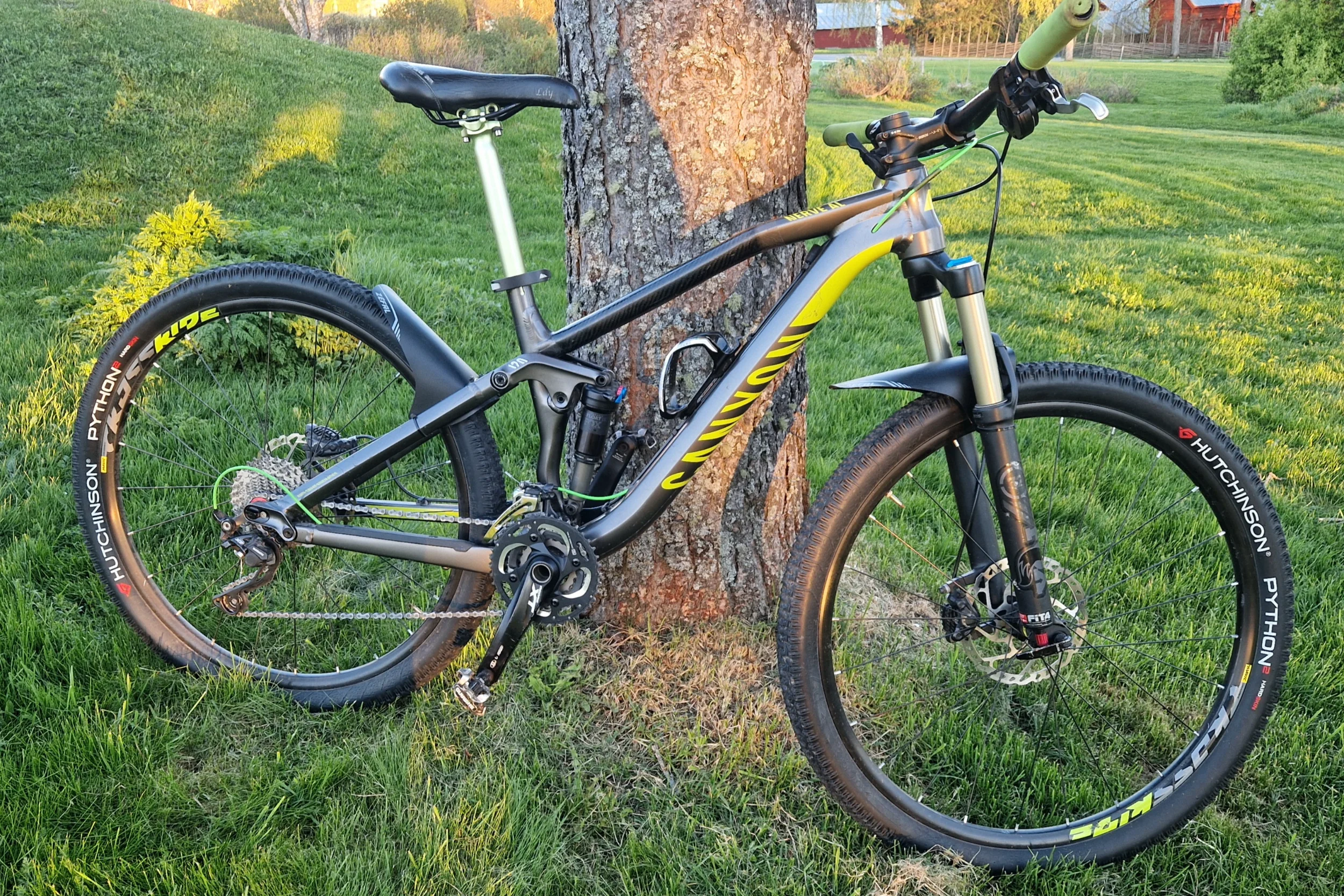 Vad är den ungefär värd? Servade dämpare, ny kedja och kasett, nya däck och hjul med nya kulor och konor i en osliten skål. Nya vajrar i nya höljen. En helt perfekt fungerande stigcykel i kanonskick, som min dotter cyklat mycket lite men nu vuxit ur. En spricka i lacken (som jag trodde var i ramen) "kosmetiskt" lagad med två lager vacumpressad kolfiberduck. Ger ett annat utseende men påverkar inte funktionen, mer än att den eventuellt blivit starkare just där.