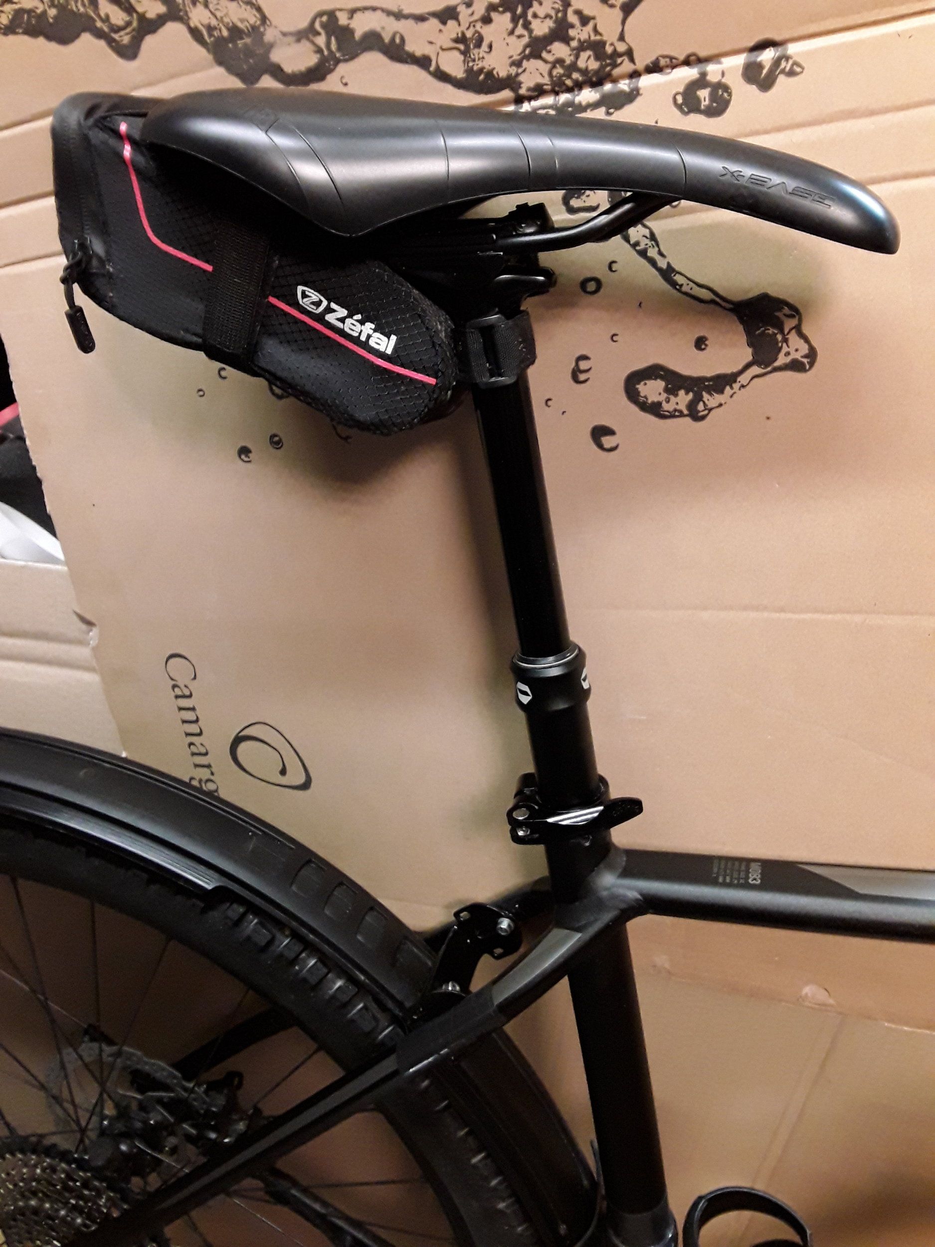 Jag klippte ett par bilder i garaget, min GC AL SL 8.0 från 2019 som är lagom inställd för mina 195 cm längd och runt 97 cm benlängd i strumplästen. Jag kan sänka sadelstolpen 5 cm till så gränsen mellan L och XL ligger nog vid en benlängd runt 92cm, övriga mått är nog inte lika kinkiga.. Jag har monterat skärm bak, en SKS Velomountain 65, egenmodifierat övre fäste och skärmförlängning i framkant tillverkat av plastfronten till en A4-pärm som jag värmde och böjde till. Jag är numera underbart ren på ryggen efter skogsturerna så det kommer snart på en skärm där fram också, fult men praktiskt!
