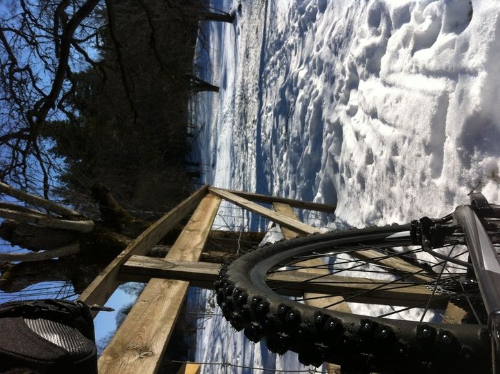 Nä, inga problem att cykla i Lunsen inte, med planering av spårvalet är det ingen fara. Dock är vissa spänger mycket intressanta med väldigt smala passager av snö och is. Man känner sig rätt duktigt när man klarar sig (överlever). Avslutade med SävjaMTB som är ok med bra fäste men känns egenligen bara jobbig utan egentliga kuligheter.