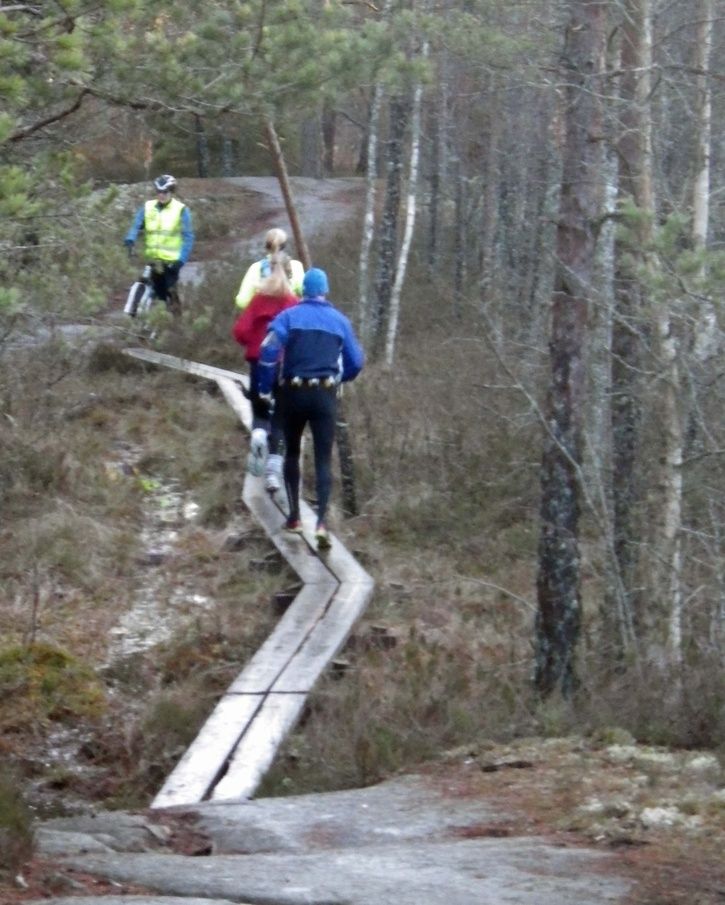 Vi var ett gäng från Knivsta som snurrade på stigarna runt Lunsentorpet igår. Stötte på älgjägare mellan Fläktastugan och Lunsentorpet (många vindfällda träd på just det segmentet btw). Jag blev något överraskad av att det jagas älg i vad jag trodde var ett naturreservat med ganska många vandrare i mellandagarna. Ena jägaren hade en rätt maffig ljuddämpare på bössan dessutom. Även om de höll god min så verkade de inte odelat förtjusta i att det var folk i skogen som skrämt älg som hunden deras fått skall på.