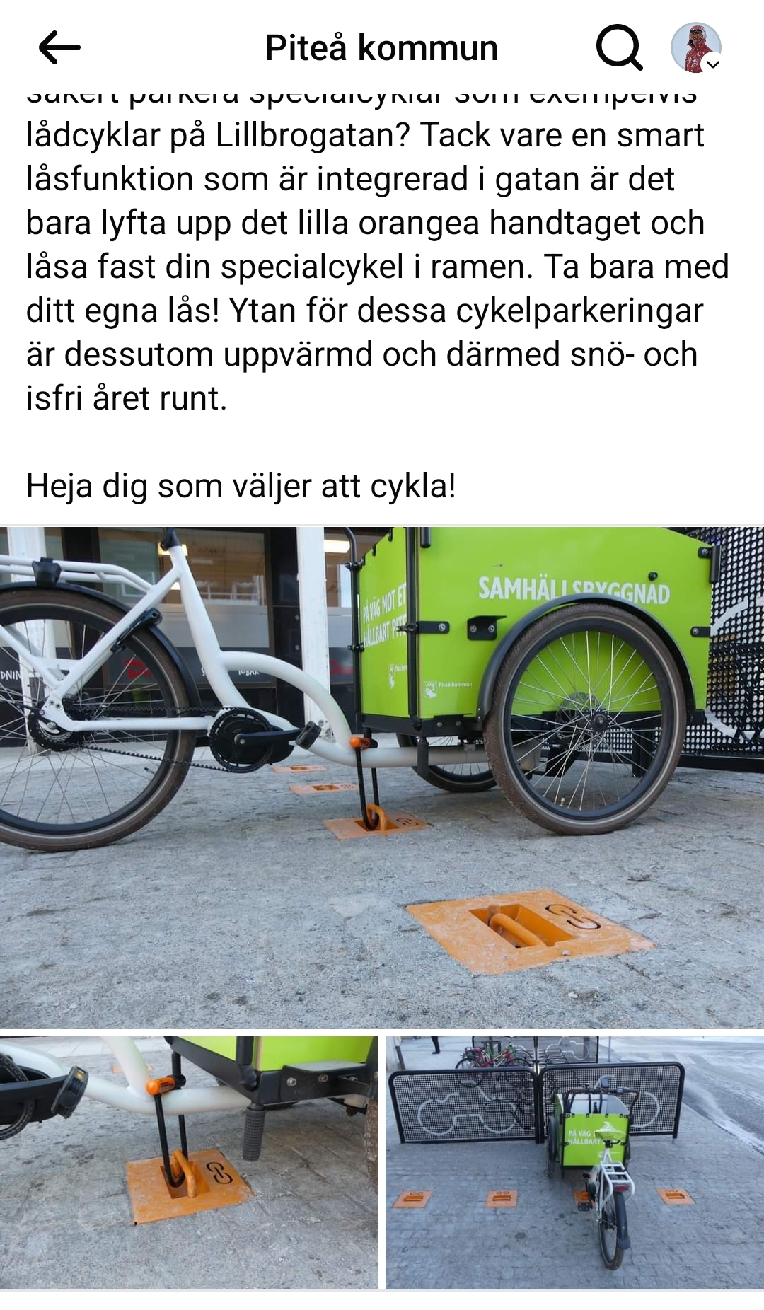Tja, det är ju en lådcykelparkering.Bra för de med lådcykel men helt odugligt om man vill låsa fast en vanlig cykel , blir lite lätt skrymmande när man ska lägga den ner för att kunna låsa fast ramen….