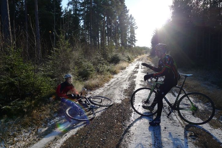 Tog du med en vän på en CX-runda i ditt mystempo. På bilden är ni sju mil från start och närmsta samhälle. :-)