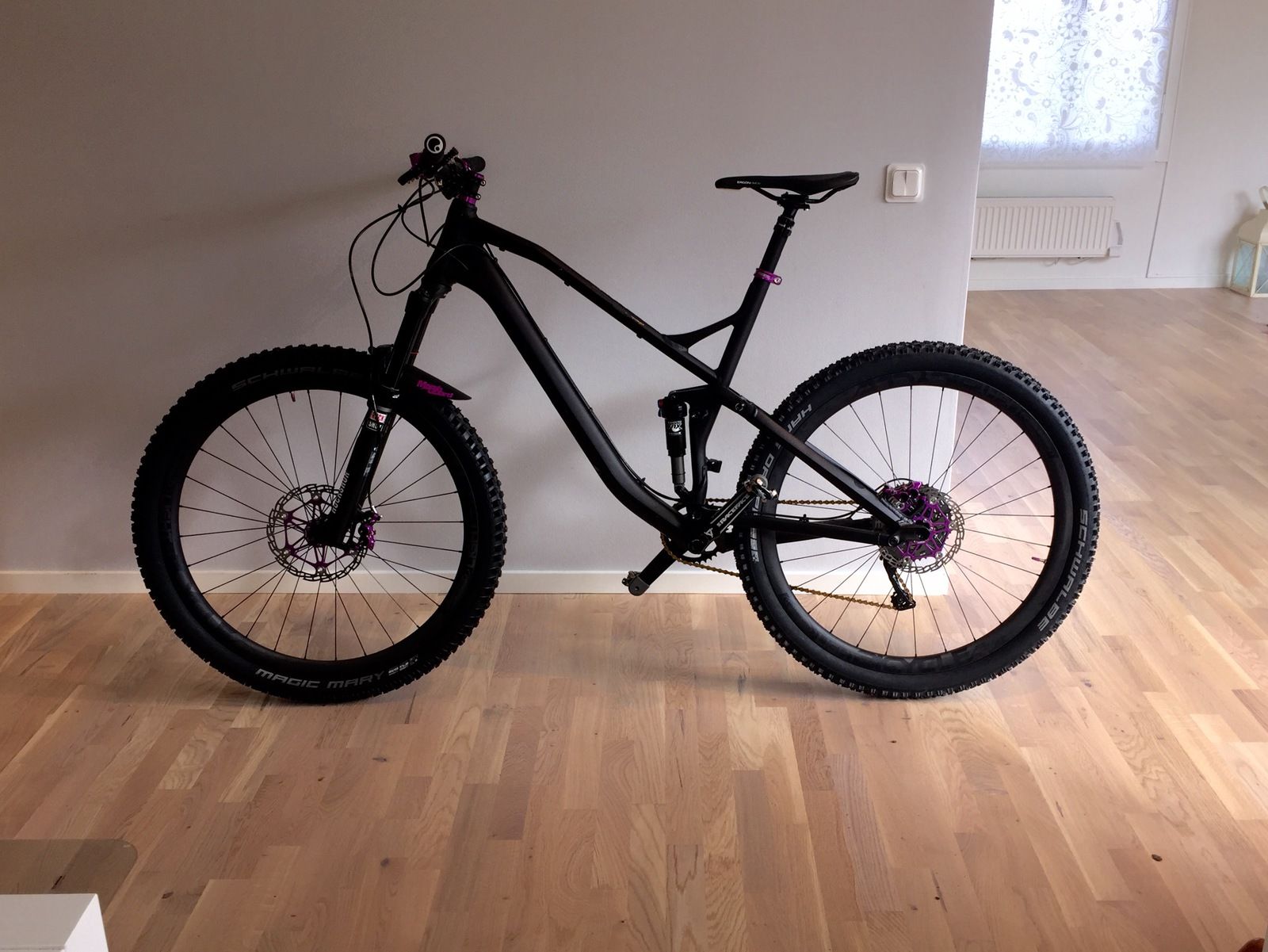 Nu är den klar inför 2016. Under vintern har den fått XT 1x11, Hope tech e4 bromsar och light-bicycle fälgar med nytt gummi.