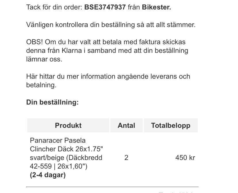 Bra däck. Alldeles för breda, men bra. ?Apropå däckdiskussionen kan jag bara bidra med att Gravelking SK för 26er äntligen finns i lager igen, tror jag har suktat efter dem över ett år nu...min beställning går iväg inom ett par minuter: