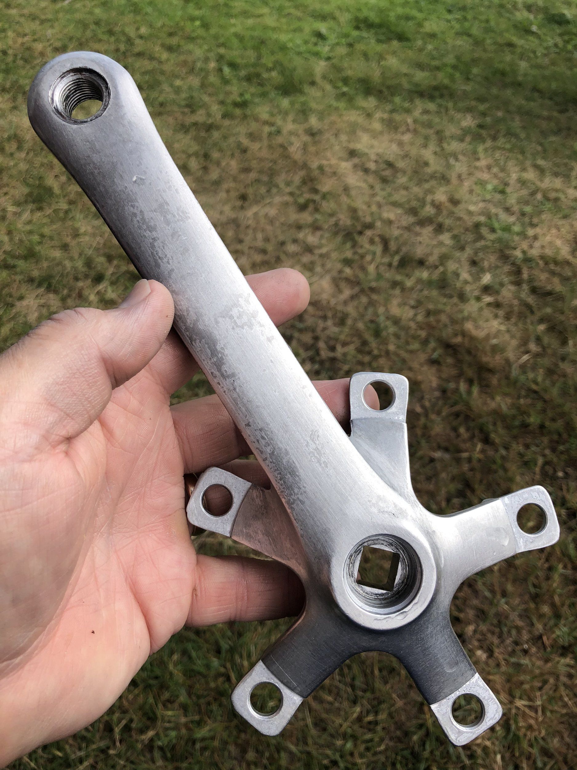 Det finns ju några polerarjunkies här (ingen nämnd, ingen glömd). Quickcrossen börjar bli fint silvrig och vevarna får plötsligt skämmas för sig. Jag har ingen stor erfarenhet av att polera upp, mer än det enklare autosol med mikrofiberduk. Det kommer inte räcka här, så vad tar man till? Helst utan att montera av dem.