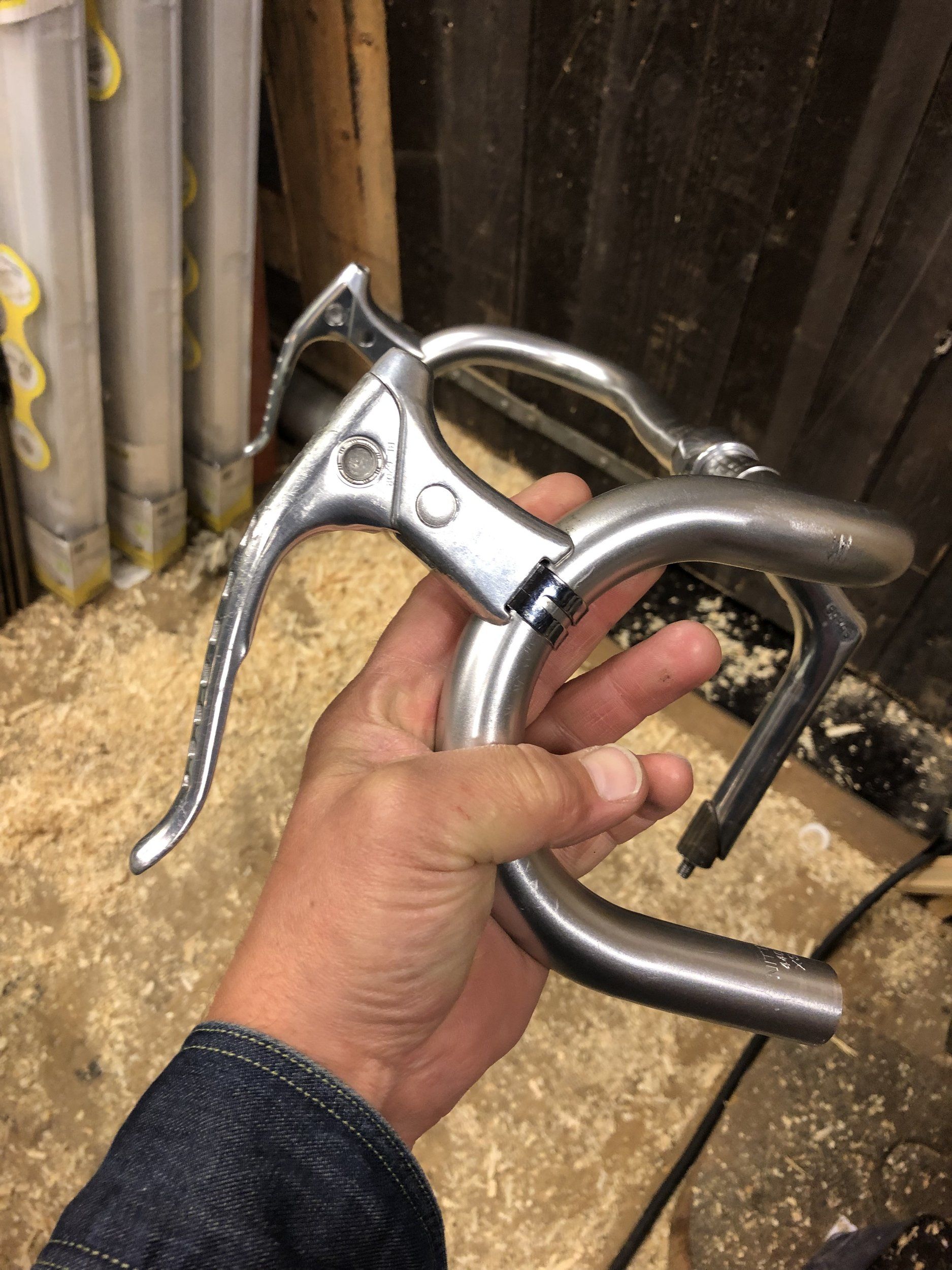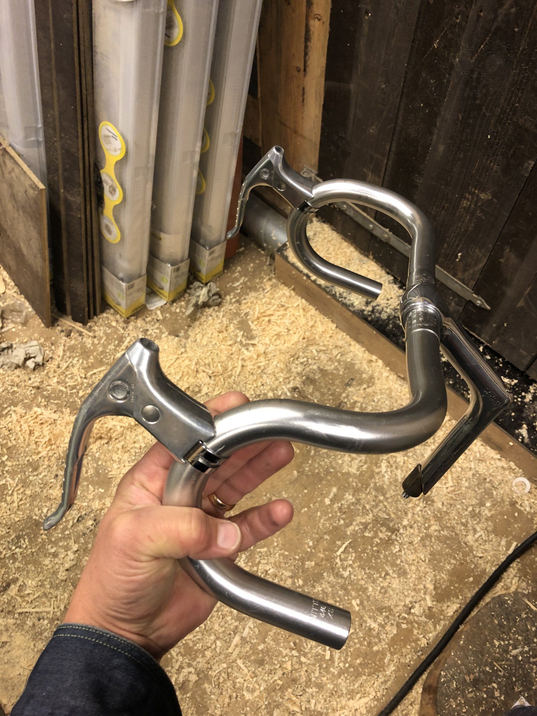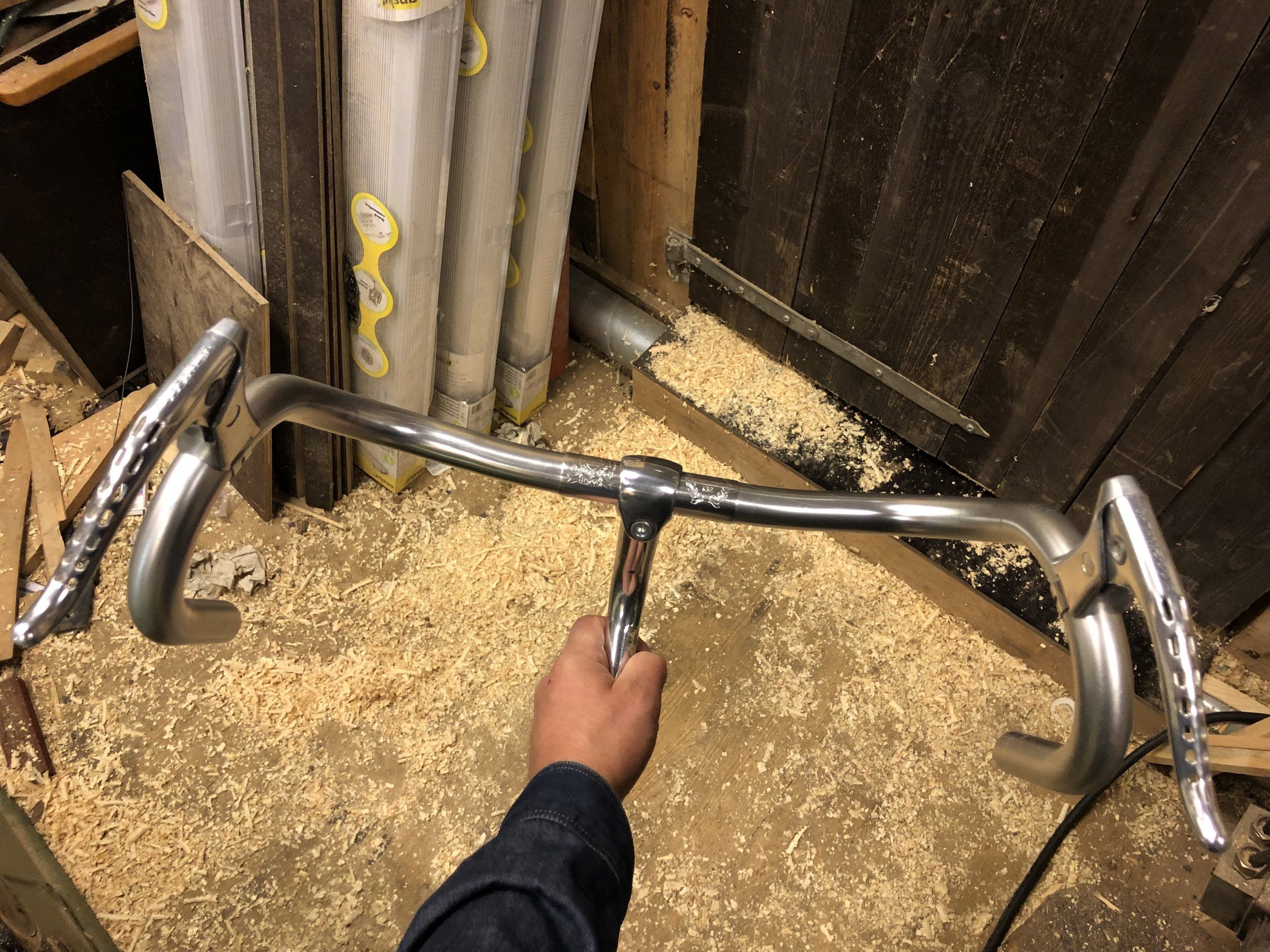 Jag tänker mig att rigga Trippelkryssar’n aka. 3XO-1:an så att jag kan byta mellan mustaschstyre och detta, men jag har på känn att det här kommer att vinna i längden. Shimano 600 bromshandtag och barend shifters.