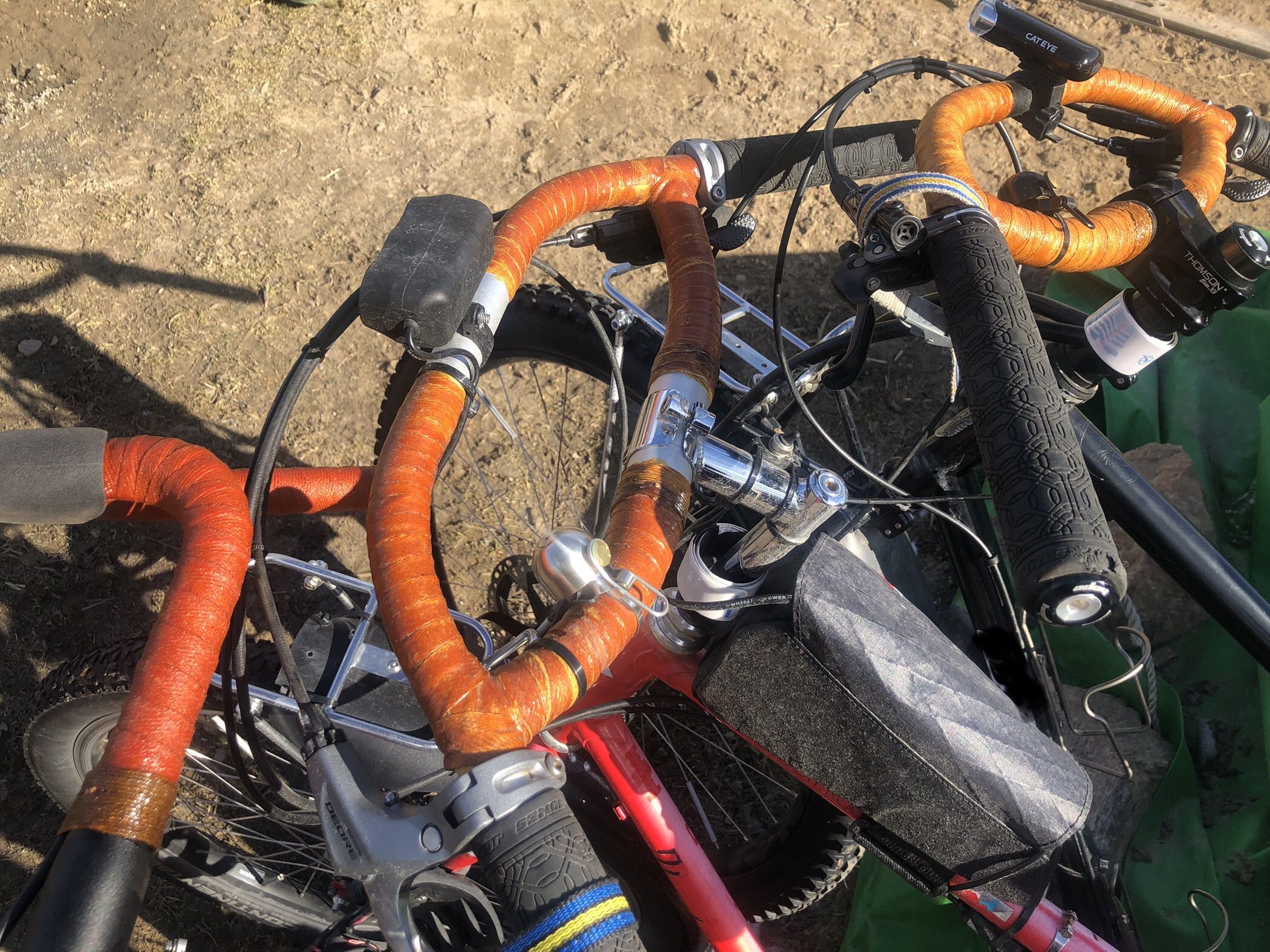 Det går åt rätt håll, men möjligen blir orange+schellack lite för rött och lite för lite åt det bruna. Det är som ni märker komplicerat det där, vad jag har förstått så spelar färgen på styrlindan en avgörande roll för hur roligt det blir att cykla. Svaret måste finnas där ute. Sökandet fortgår.