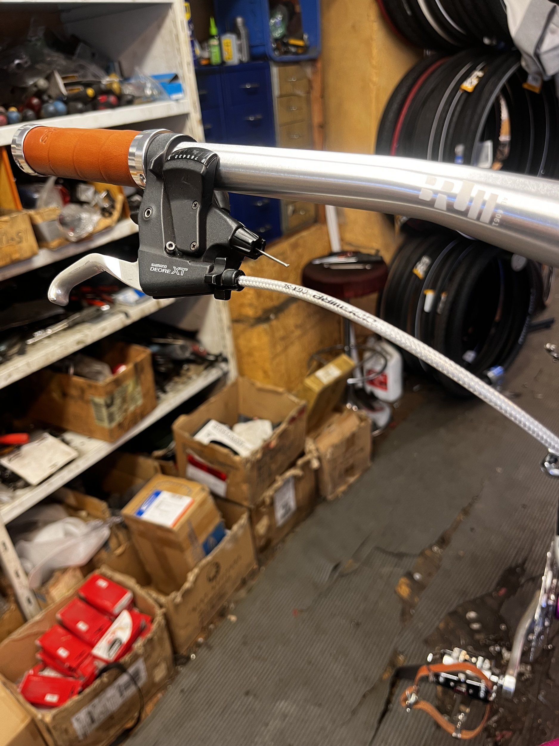 Ditt skarpa öga sviker dig inte vad det gäller XT bromsen fram…. Svaret är ett det är en bakbroms även fram. Tog det som fanns! ?