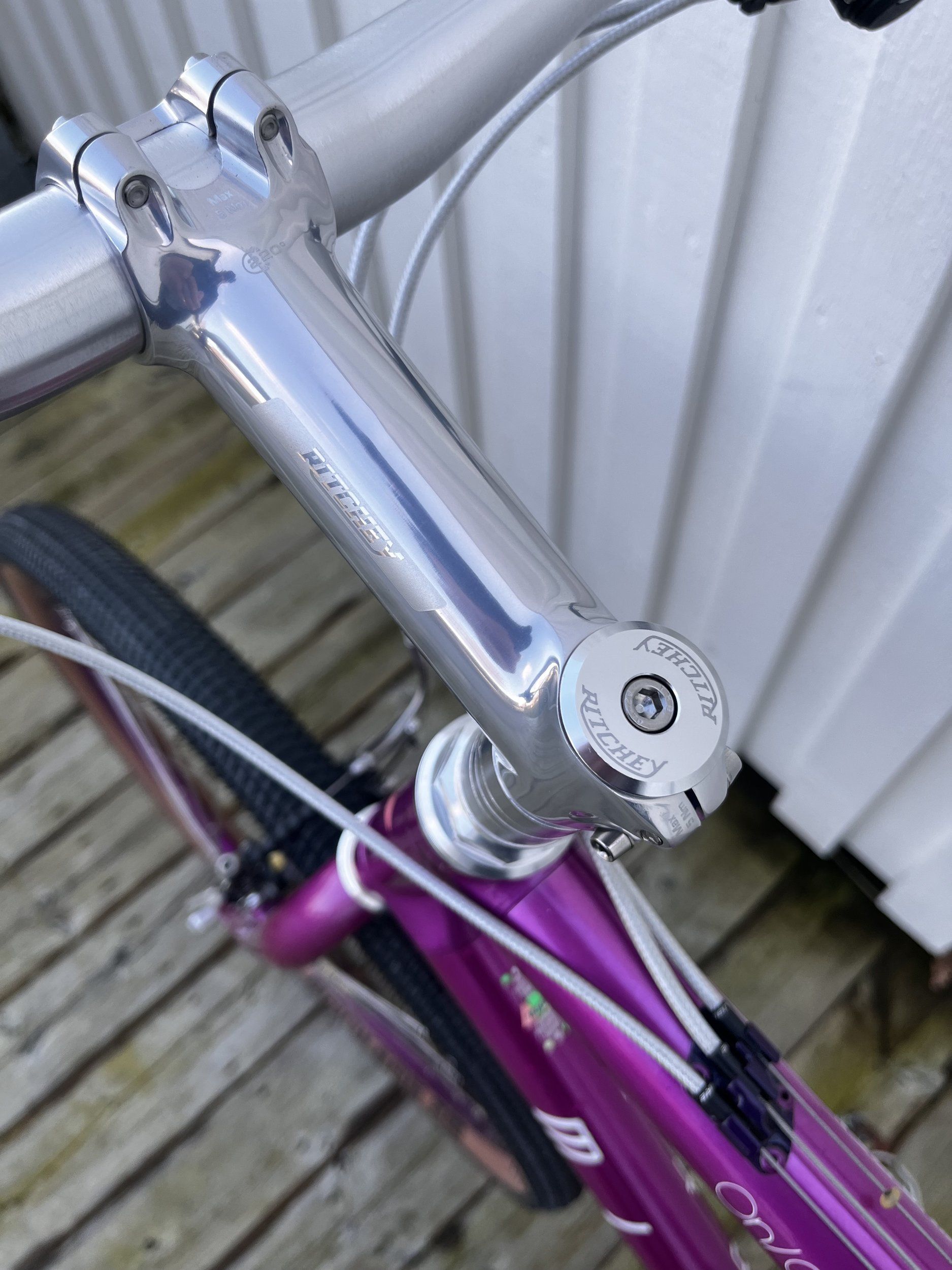 Med den krockade vinkeln är det ju sån där häftig ”low trail” som Jan Heine m.fl. Randoneur-Frankofiler talar sig varm om. ;) Häng på en tungt lastad styrväska i bomull (naturligtvis vattentät bomull) och ha bara på dig ull så kommer eventuell nervös styrning ordna upp sig…