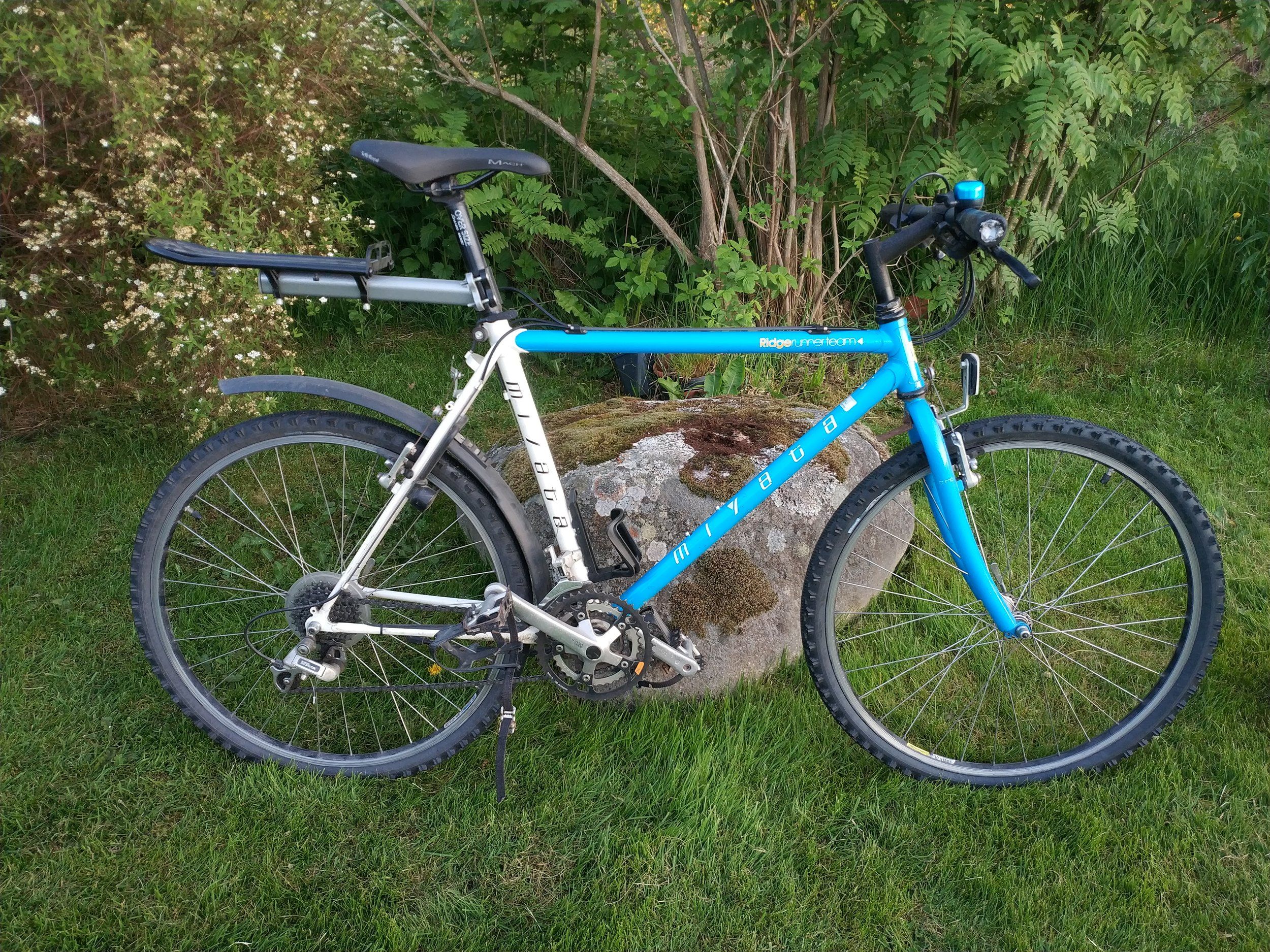 Jag gillar sadelstolpen, men jag kan inte påstå att jag märker någon skillnad mellan den och de raka stolpar som jag har på mina andra Miyator i samma storlek. Jag hade gärna haft en silvrig Thomson, mest för att Thomson är lite fräckare än Biltema, men de silvriga verkar vara omöjliga att få tag på. Den är hur som helst grym som allt i allo-cykel, smuts-tourer, pendlare, storhandlingscykel och vad mer man kan tänka sig. Bygg och kör the good Jesus ur cykeln!