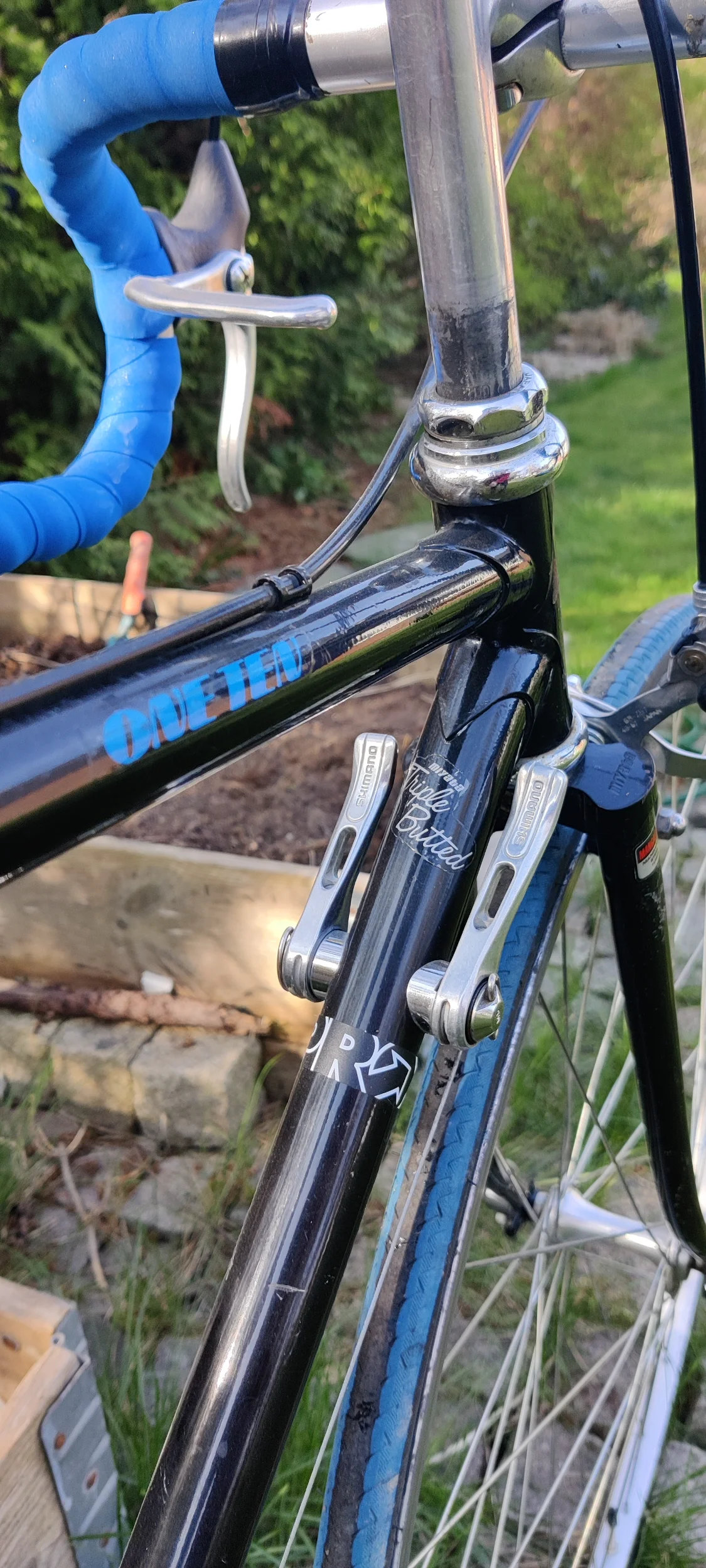 Cykelintresset kräver mycket utrymme, hur får man familjen att acceptera det? Jo, man skaffar cyklar till familjen. Jag köpte en One ten i superskick för 600kr för att få yngsta sonen att börja cykla till skolan. Han hade 7km dit och fick därmed busskort, men inte kan man nära en bussåkare vid sin barm? Första skolveckan gav han upp efter 1km (nedför) så jag fick dra honom långa delar resterande sträcka, men i slutet av läsåret hann jag inte ifatt honom om han stack iväg lite tidigare :)