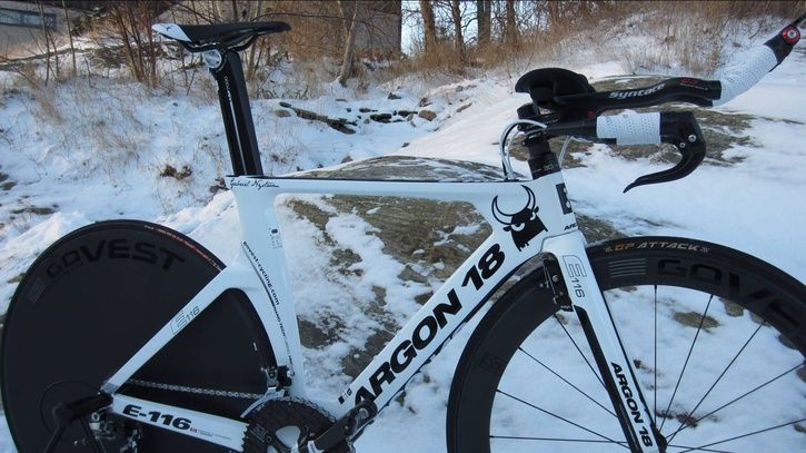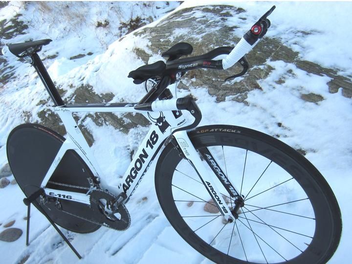 Cykeln såldes utan hjul men tv får köparen låna hjul av mig så han kan testa hojen på trainern.
