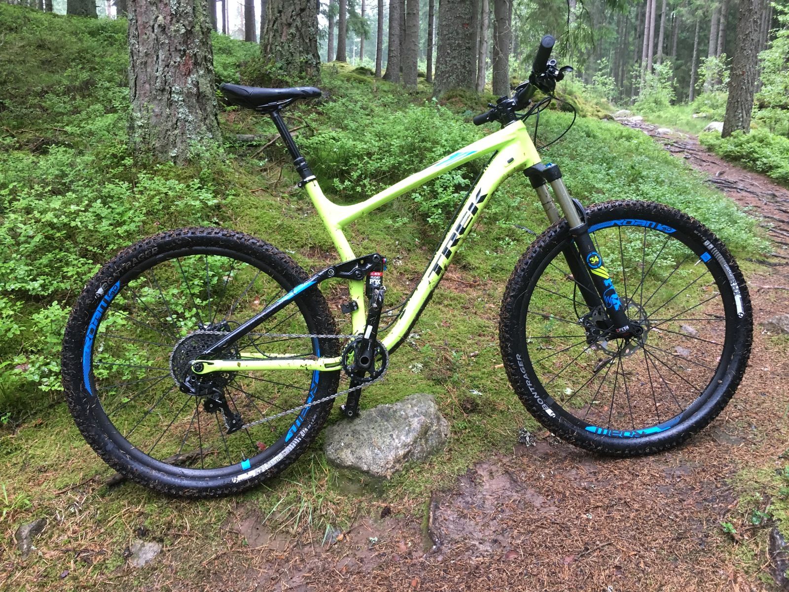 Stämmer att den är riktigt skoj med Rocket Rons, är verkligen galet fäste i alla riktningar med plus-däck så kul och praktiskt när man ska ut på lite mer äventyrliga rundor/toppar. Men har rullat flest mil som xc-setup, grym komfort med 52mm Dugast och 120 i slag, och inget fel på farten när hjulen vägde in på 1196g. Kanske kommer bantas ner lite till mot 9,4-9,5kg framåt hösten eller till nästa säsong.