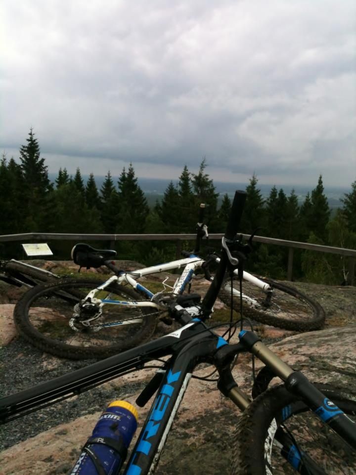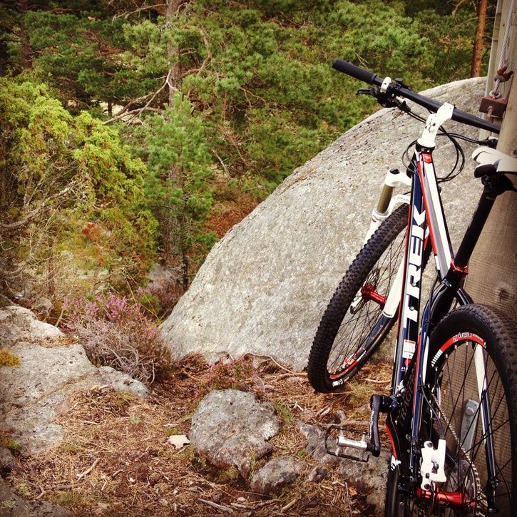 Till slut lägger jag in en halvdan mobilbild på min Trek Ex 7 från 2008. Ramen är det enda som inte bytts sedan dess. Nu har jag dock köpt en Transition Bandit och flyttat över komponenterna till den. Jag är ruskigt nöjd med min Trek och den nya ramen har en del att leva upp till.