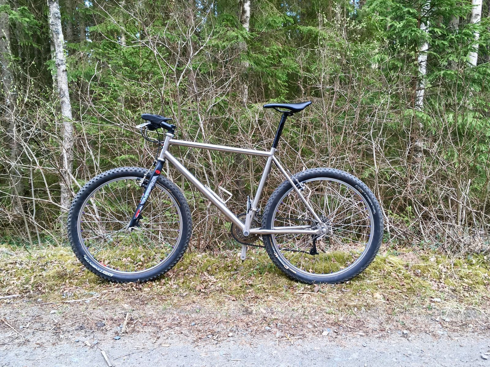 Mycket väl slöjdat!freddiesan sa:Nya pendlarhojen som äntligen är färdig. Min egen ram och gaffel. Gaffeln är inspirerad av Jeff Jones "Truss fork" och möjliggör ett styrhuvud av det äldre och smalare 1 1/8 stuket eftersom jag har två kontaktpunkter till styrhuvudet och därmed fördelar krafterna jämnare mellan de två punkterna. Det blir en stelare gaffel utan vibration vid inbromsning och en skarpare känsla helt enkelt. Utrymme för upp till 29" x 3" hjul. Schwalbe G-One Speed LiteSkin 29" x 3.35" däck för snabbhet på grusvägar och asfalt.