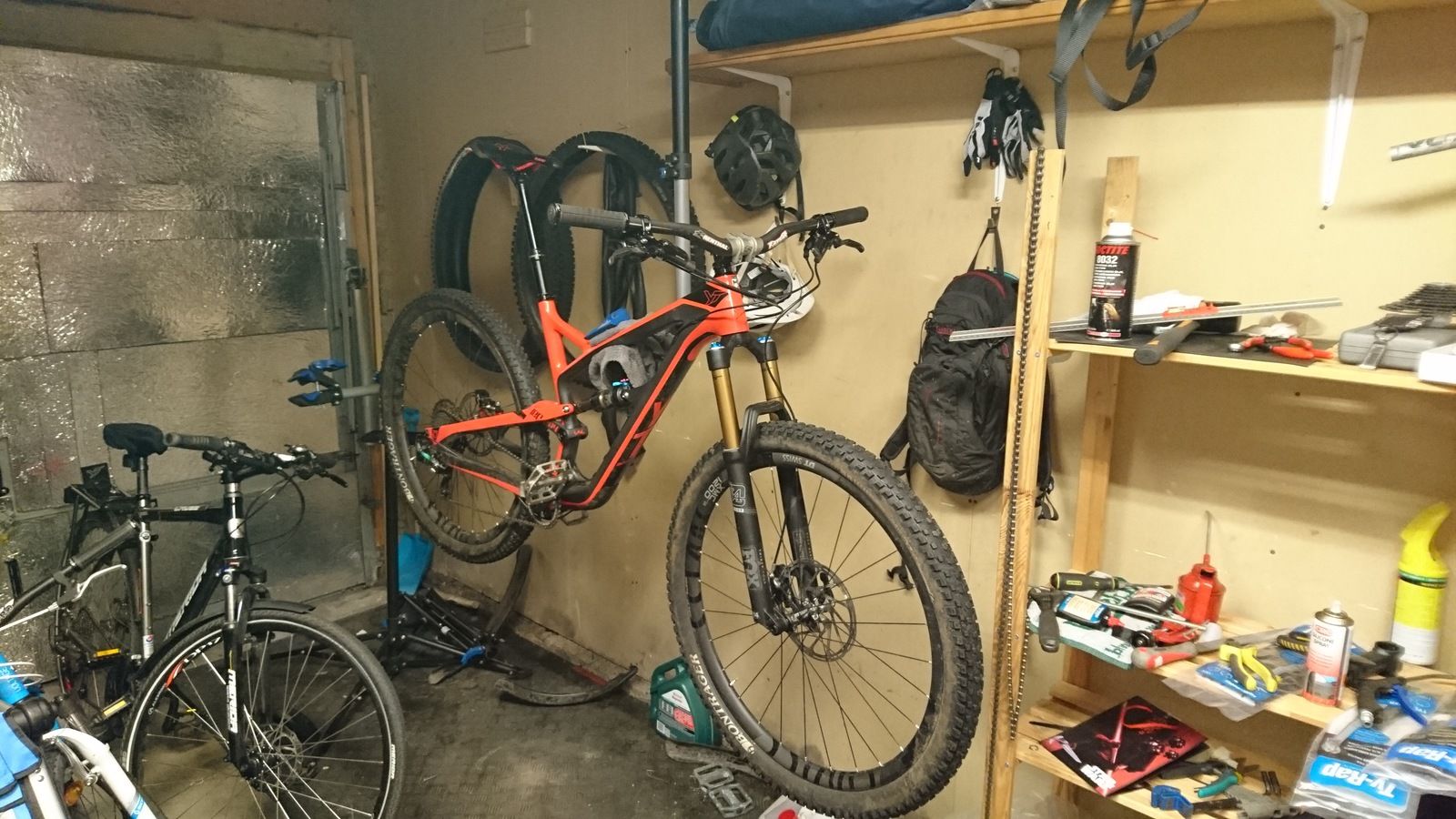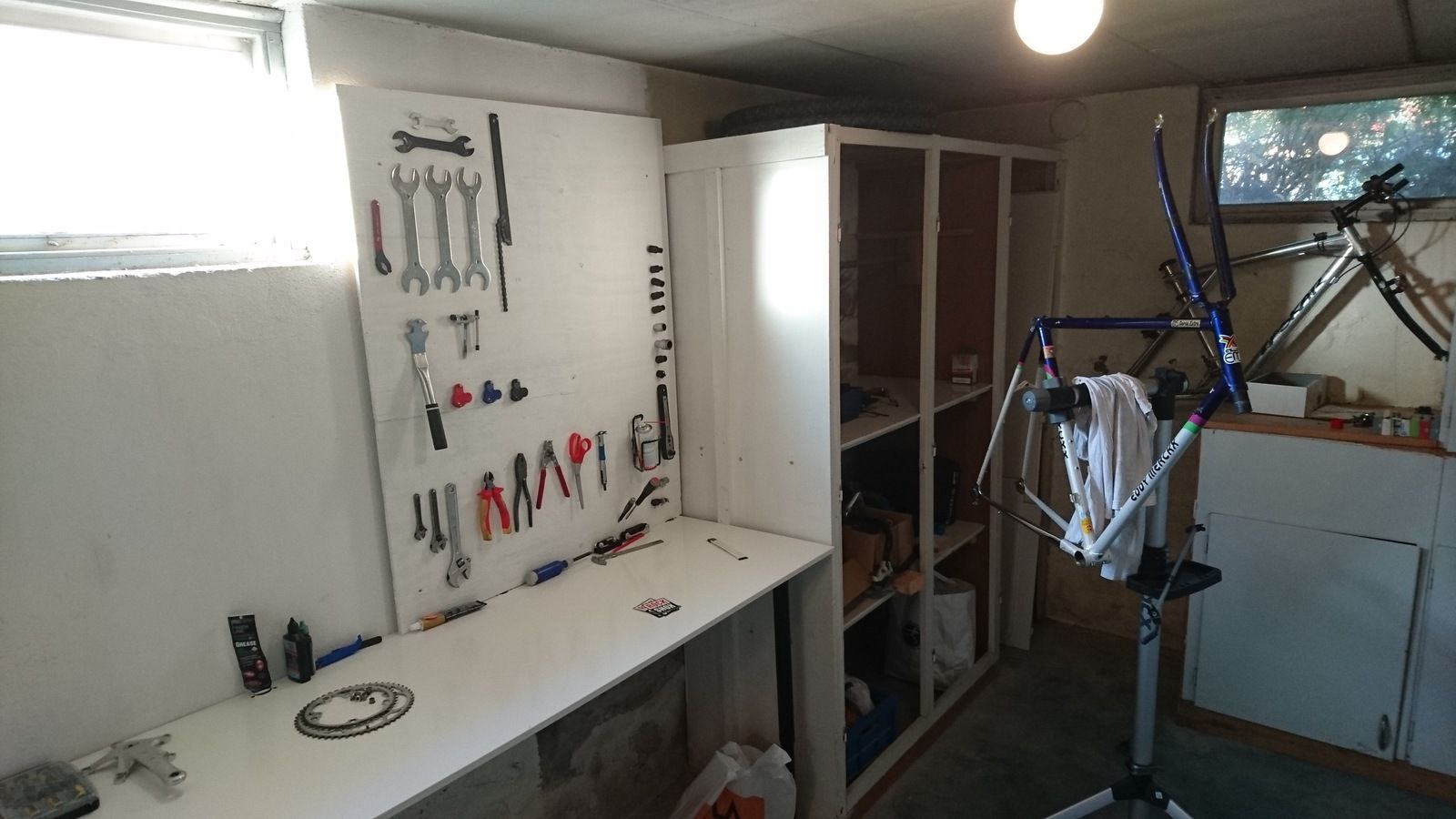 Skändade ett gammalt Lidl ställ som jag satte upp i taket. Riktigt skönt att ha golvet under cykeln fritt