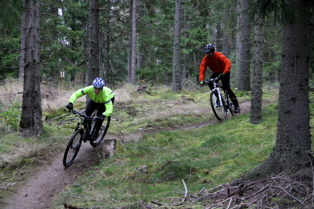 Testet kickstartade så med en långhelg i Dalarna, för att få den rätta Cykelvasakänslan, där det mixades långloppsträning med stigcykling. Temperaturen höll sig precis på rätt sida nollan och underlaget – en mix av grusväg, breda motionsspår, långa klättringar och stökiga, blöta stigar liberalt utsmyckade med lerhål – bjöd på ett ganska representativt användningsområde för XC-cyklar. Kombinera det med lite lek på de byggda stigarna på Lugnet för jämförande back-to-back-tester på slingor med hopp och doserade kurvor och korta klättringar emellan så kunde en ganska bra initial jämförelse av intryck göras.
