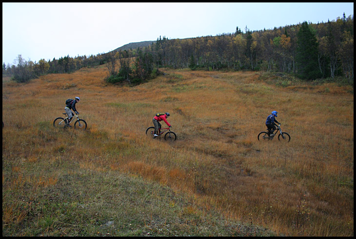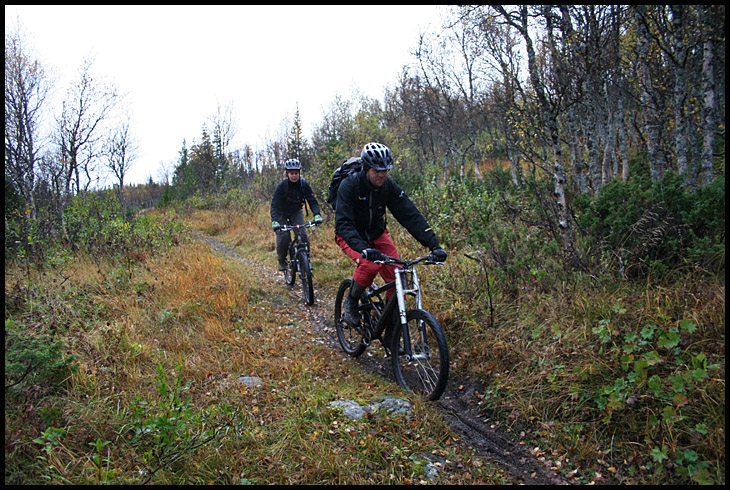 Men efter lite telefonprat med Egil boende borta i Åre så lovade han glatt oss guidning till en bra runda på Välliste. Välliste är en gammal postväg och som först bjuder på en 45 minuters släpa uppför och sedan betydligt längre tid utför på smal, slingrig och stökig stig från högfjället ner genom fjällskog till låglandskog och avslutningsvis en snutt grusväg till stora vägen. Det är en runda Egil har skrutit en massa om, men som tyvärr inte har hunnits med att köras under de senaste årens Årebesök. Så detta verkade i alla fall bli ett bra och roligt alternativ till våra havererade planer.