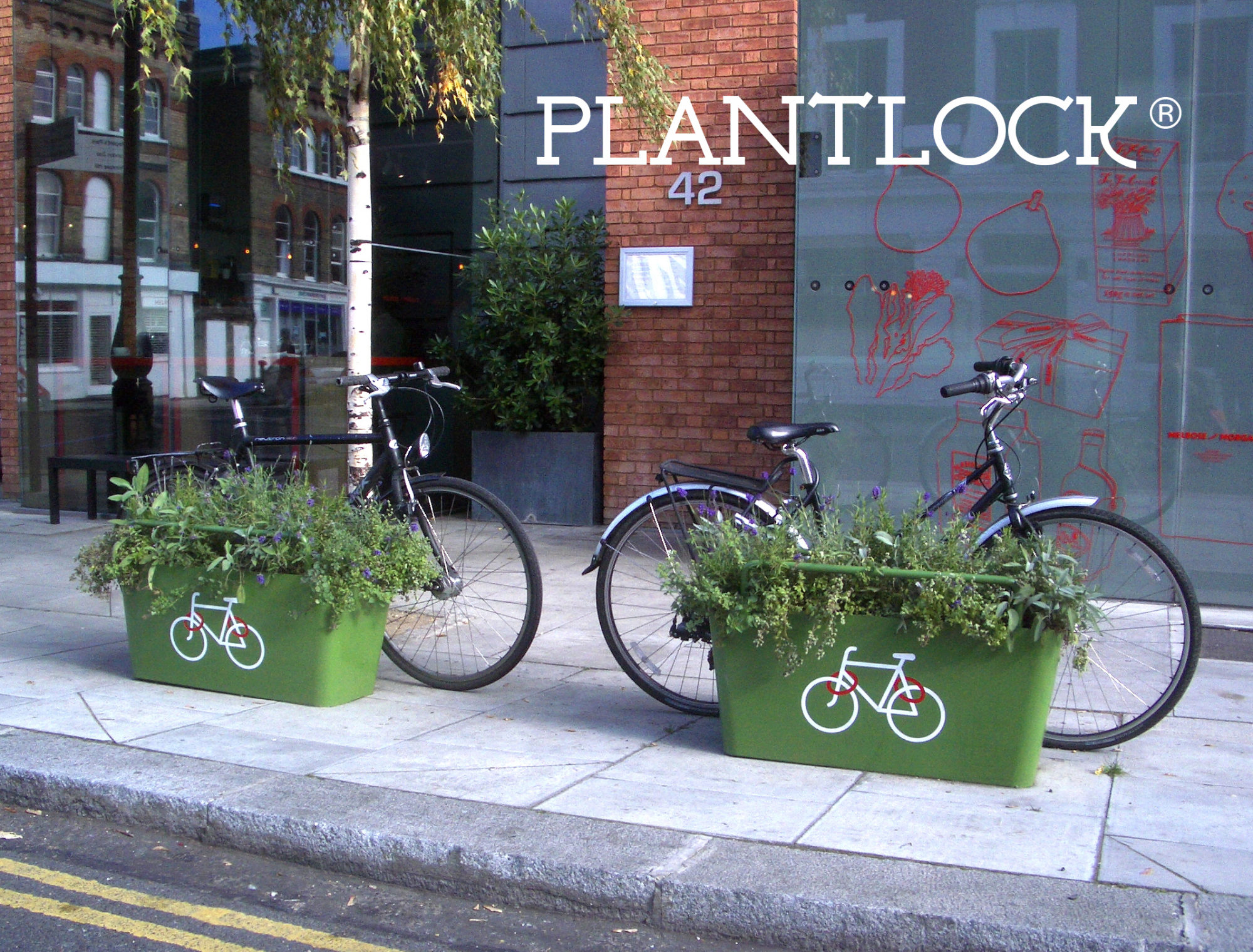 Det engelska företaget Front Yard Company har funderat en hel del över hur kombinationen säker cykelparkering och grönska i gaturummet skulle kunna kombineras. Svaret blev PlantLock, en blomsterbänk och cykelparkering i ett. När blomsterbänken är fylld med jord, blir den så tung att det är omöjligt att flytta på lådan. De flesta cykeltjuvarna skulle förmodligen inte lägga tiden på att försöka gräva ut lådan men för extra säkerhet så kan lådan också bultas fast i marken.