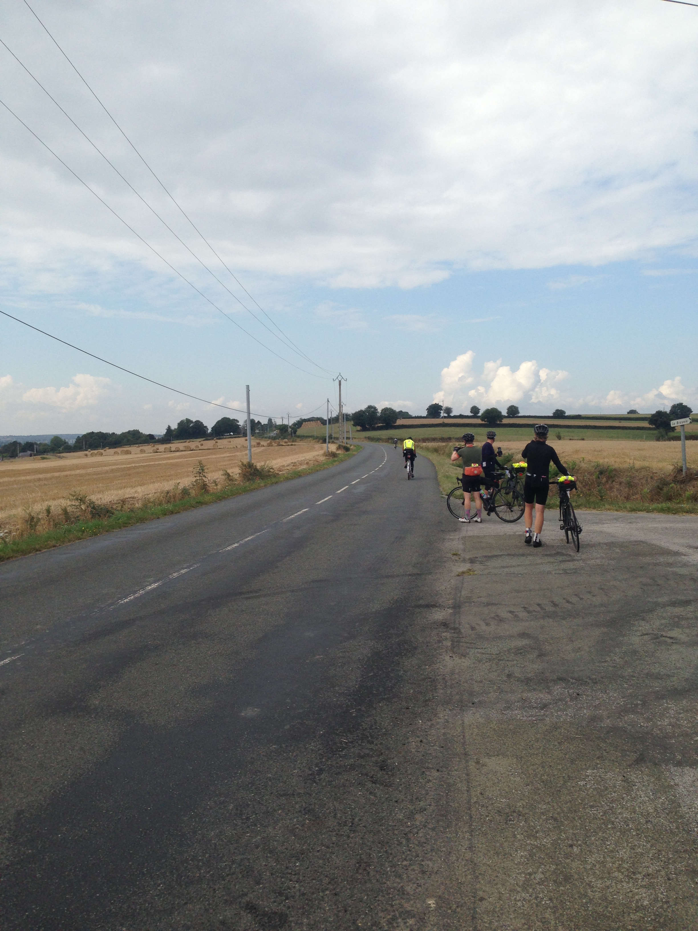 I gryningen stoppade jag en fransk tidningsbärare och frågade om han visste var jag skulle. Han sa ”det där är vägen mot Paris” på franska och pekade vänster i T-korsningen. Jag hade inte sett några pilar på någon mil och min Garmin hade dött. När jag stod där och övervägde att cykla tillbaka kom ett par engelsktalande cyklister med utpräglad Brittisk accent som påminde om Little Britain. De pratade oavbrutet och diskuterade vägvalet. De hade kommit överens om att de förmodligen hade cyklat fel och en av dem hade en Garmin med vägvisning. Han hade bara glömt titta på den. De såg på kartan att vi kunde ta vänster som tidningsbudet hade sagt men så var det oroade över att det skulle vara en hemlig kontroll på vägen så jag fick vara överslagsröst och bestämde att vi skulle cykla tillbaka. Ett par mil extra är just vad jag behövde tänkte jag. Andy och hans little Britainkompis hängde på och fortsatte smågräla. Efter en halv evighet i snigeltempo och med nya skavsår i öronen kom vi till den korsningen där vi hade missat en pil. Väl på spåret igen tackade jag för mig och drog vidare.