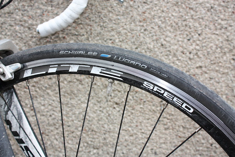 Däcken är av samma modell på båda cyklarna, Schwalbe Lugano. De skiljer sig åt en aning genom att bredden är 23 millimeter på racern och 25 mm på hybriden. Lugano är Schwalbes billigaste landsvägsdäck och är utrustat med punkteringsskydd.