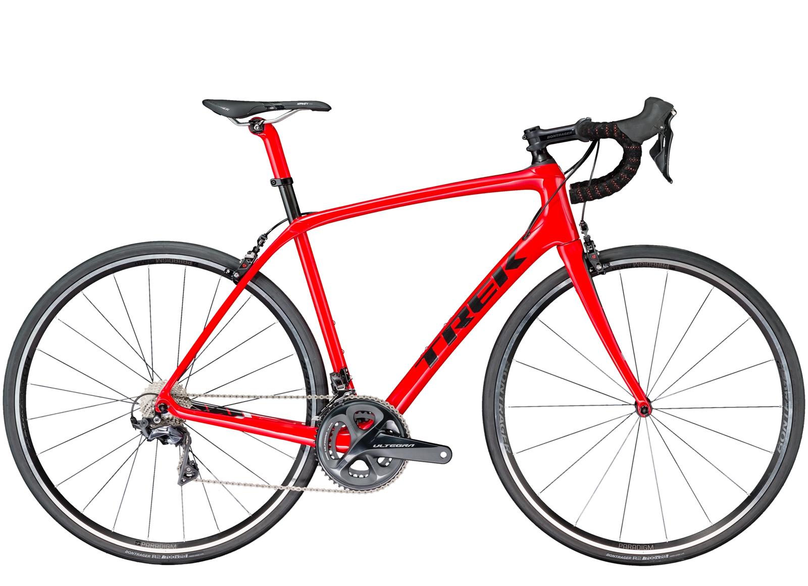 Domane SL 6 är en enastående racercykel för allroundbruk: tävlingsklar spec, lätt kolfiberram och IsoSpeed fram och bak som slätar ut det knaggligaste underlag. Vi snålar inte på specen: den har en komplett Shimano Ultegra-drivlina. Tubeless Ready Bontrager Paradigm-hjul ger extra trygghet och komfort under långa, snabba turer.