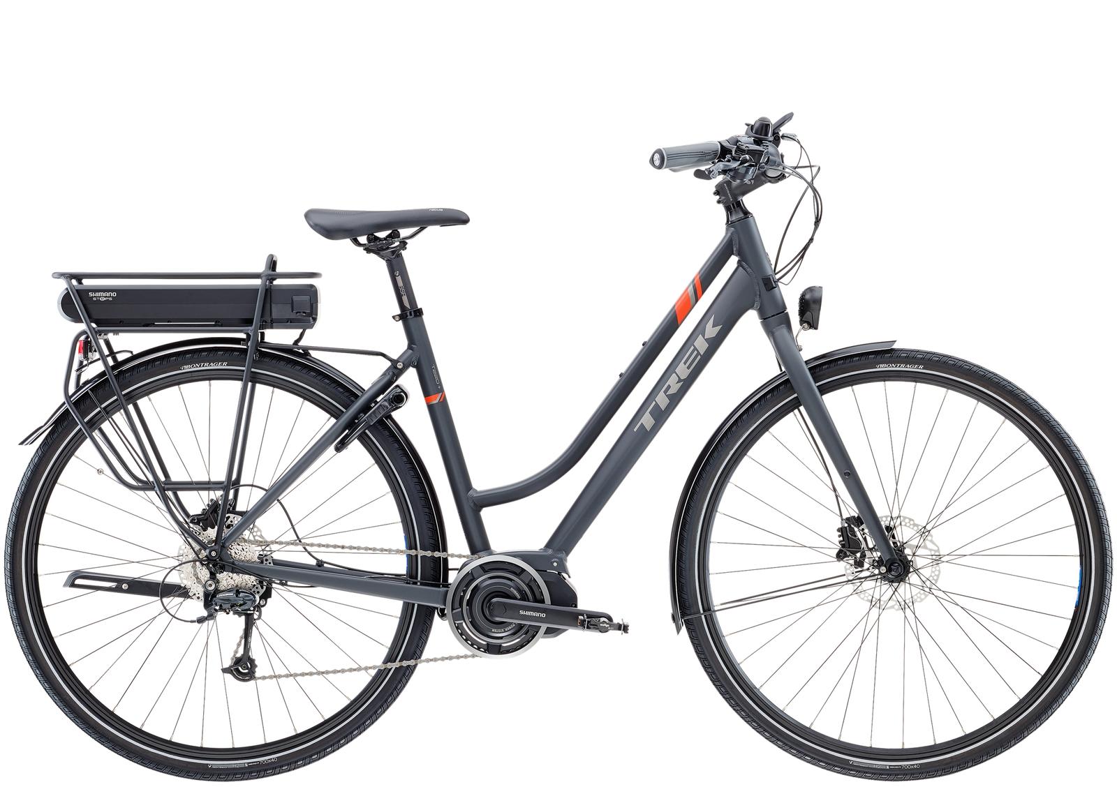 Treks sportiga Ride+ är en cykel som kombinerar elegans och komfort. Utrustad med Shimano STEPS-systemet med 420 Wh-batteri integrerat i pakethållaren. Shimano med 9 externa växlar. Hydrauliska skivbromsar betyder överlägsen bromskraft i stadstrafiken.